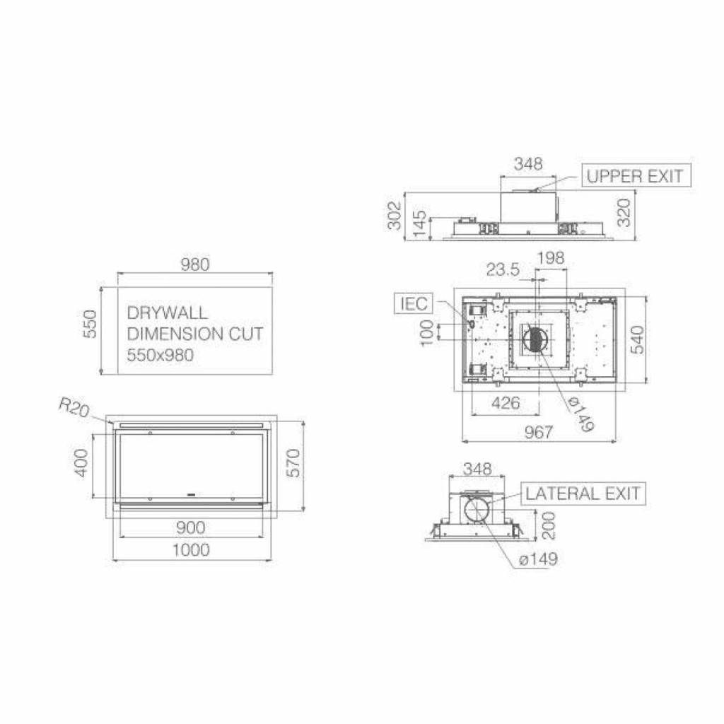 - Forma, kivitel: Mennyezetbe építhető