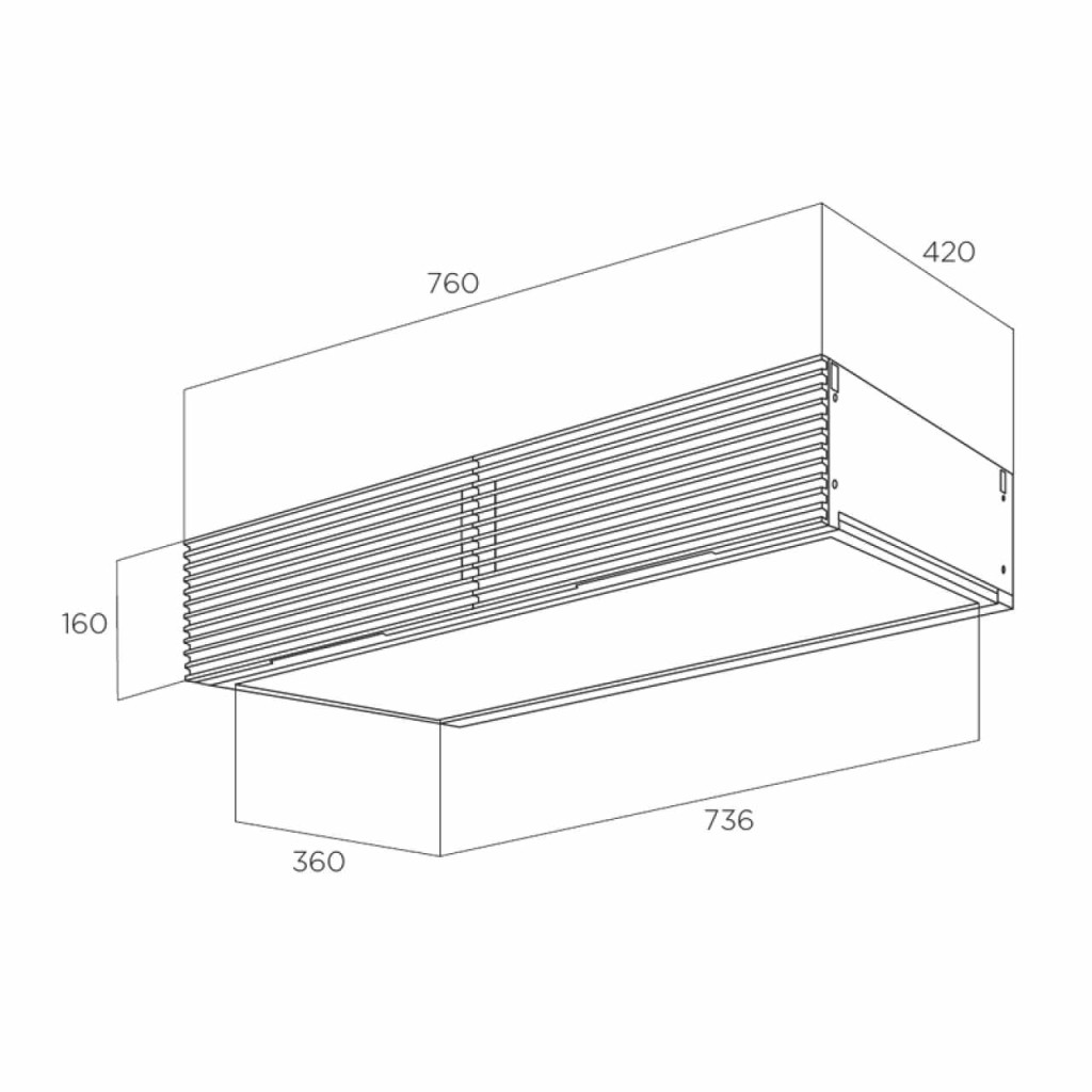 A kiegészítő modul teljes felülete LED-világítással van felszerelve, és tökéletes választás az Elica Open Suite páraelszívó testreszabásához. A modul felső része úgy lett kialakítva, hogy a mindennapi használatra szánt konyhai eszközöket praktikusan, kézközelben tartsa. A modul rögzítéséhez szükséges egy további rács megvásárlása is: KIT0166963