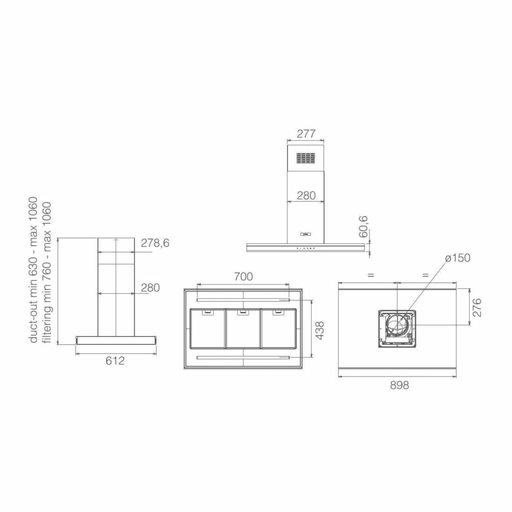 A fekete üveg előlap alumíniumkeretbe van foglalva, ami kiemeli a készülék vonalait. A páraelszívó továbbá távvezérelhető: alkalmazással vagy hangvezérléssel bluetooth kapcsolattal és az épp használatban lévő Elica főzőlapok teljesítményének megfelelően állítja be magát. Maximális sebességnél 770 m³/h kapacitással kiváló teljesítményű szívórendszerrel rendelkezik. Az érintésvezérlőt az üveg elrejti, a LED-ek alacsony energiafogyasztással világítják meg a főzőlapot.