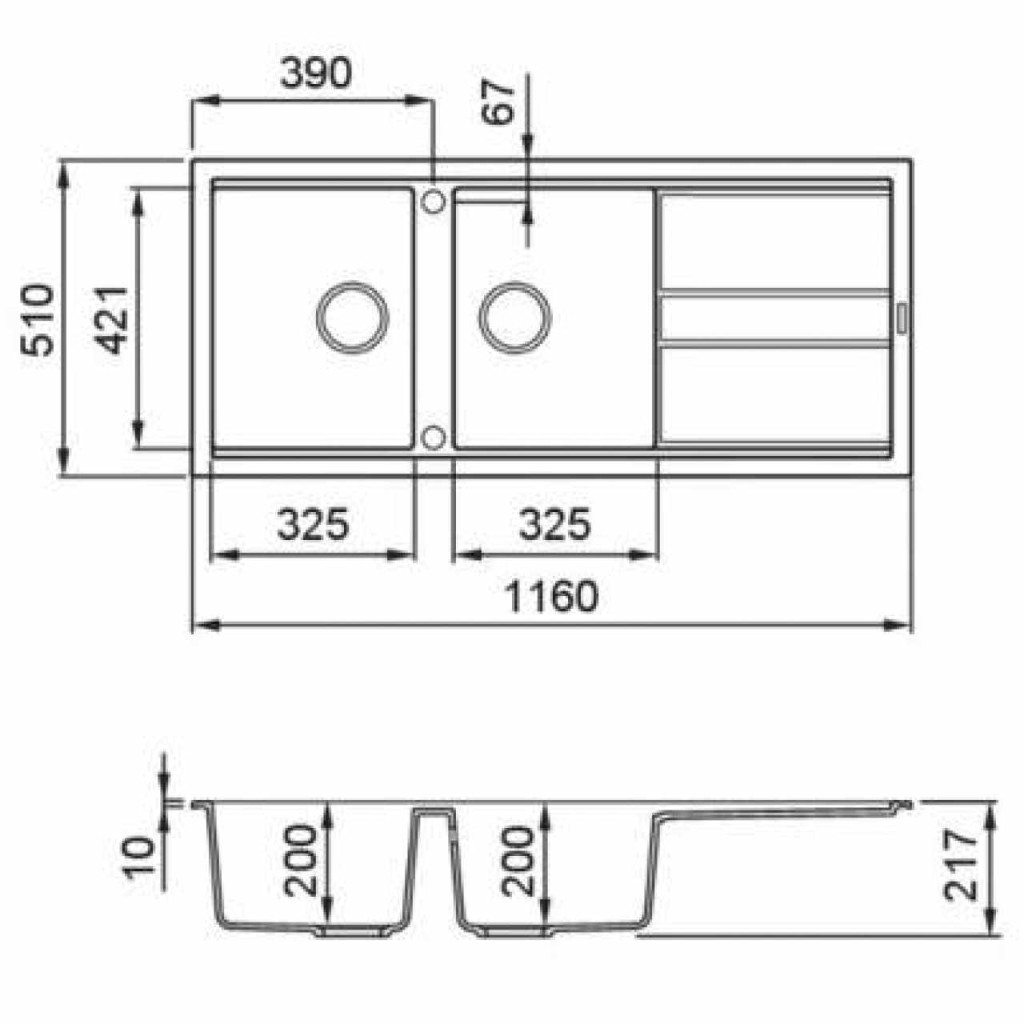 - Mosogatótálca mérete: 1160x510