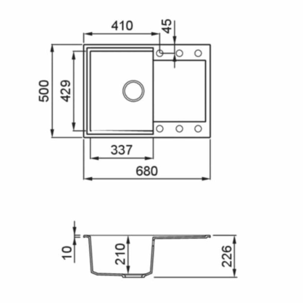 ELLECI- Mosogatótálca Easy 135 68x50 Granitek 1 m. +cseppt. Bianco soft G39