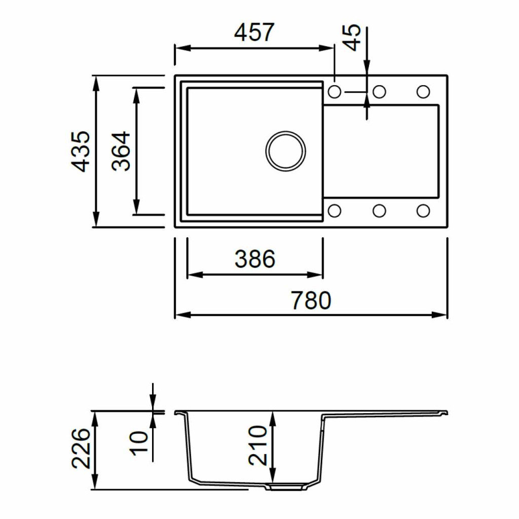 A 780x435 mm-es teljes méret és a 210 mm-es medencemélység bőséges helyet kínál a nagyobb edények tisztításához is. A 760x415 mm-es kivágási méret és a 500 mm-es szekrényméret ideális választássá teszi kisebb és közepes méretű konyhák számára. A megfordítható kialakításnak köszönhetően a csepptálca elhelyezése a konyha adottságaihoz igazítható, így mindig a legkényelmesebb munkafolyamatot biztosítja.