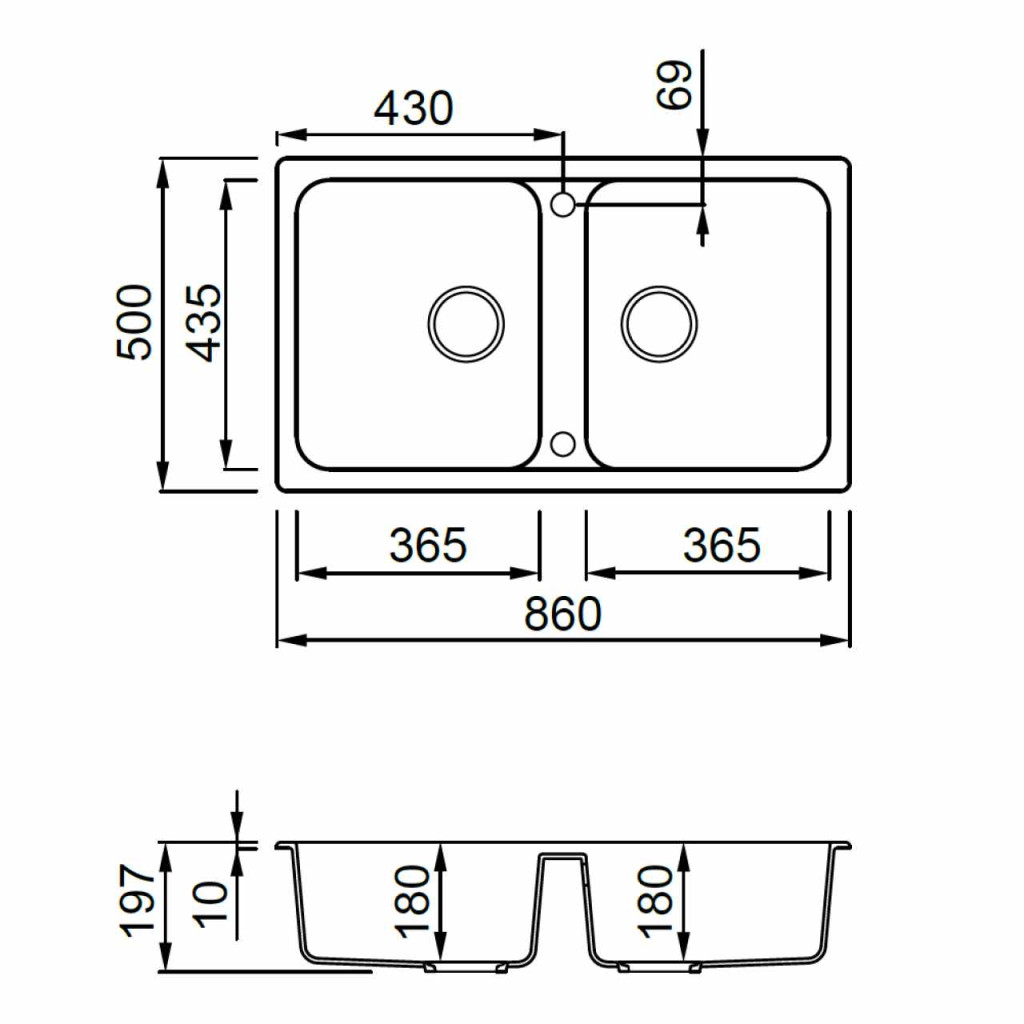 ELLECI- Mosogatótálca Life 450 86x50 Granitek 2m. Bianco soft G39