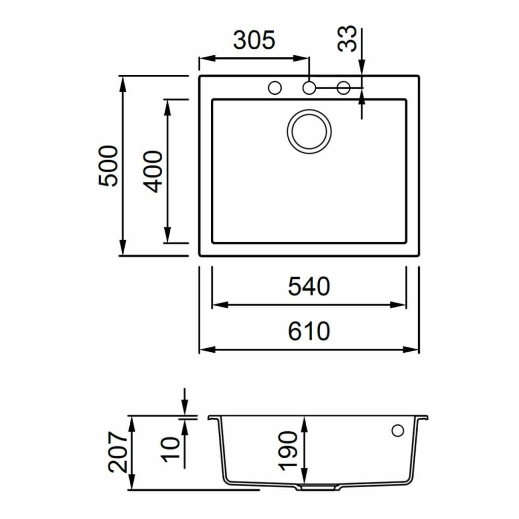 • Mosogatótálca mérete: 610x500