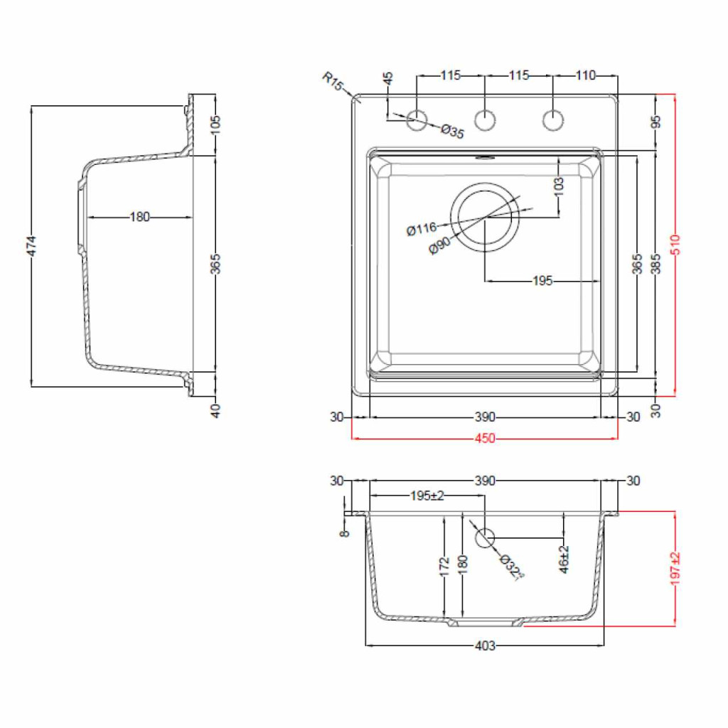 • Mosogatótálca mérete: 450x510