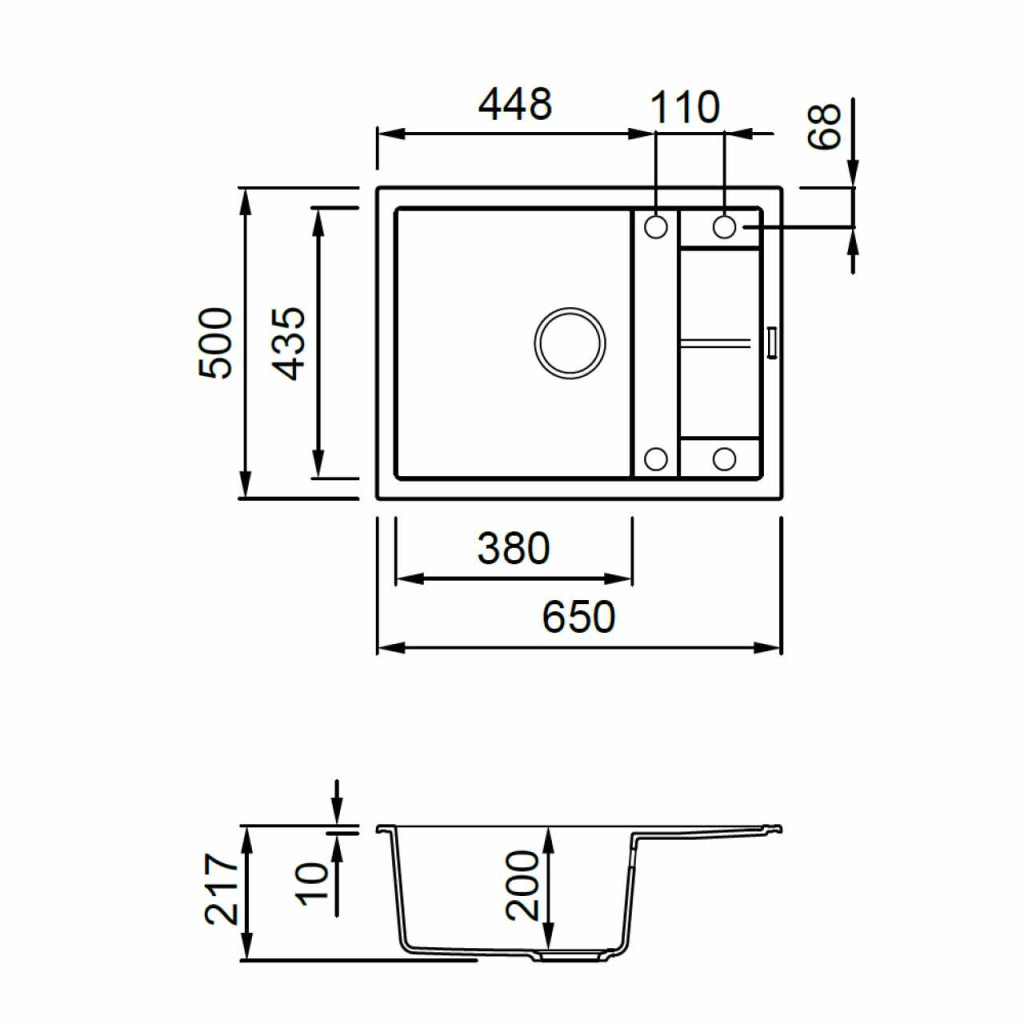 - Mosogatótálca mérete: 650x500
