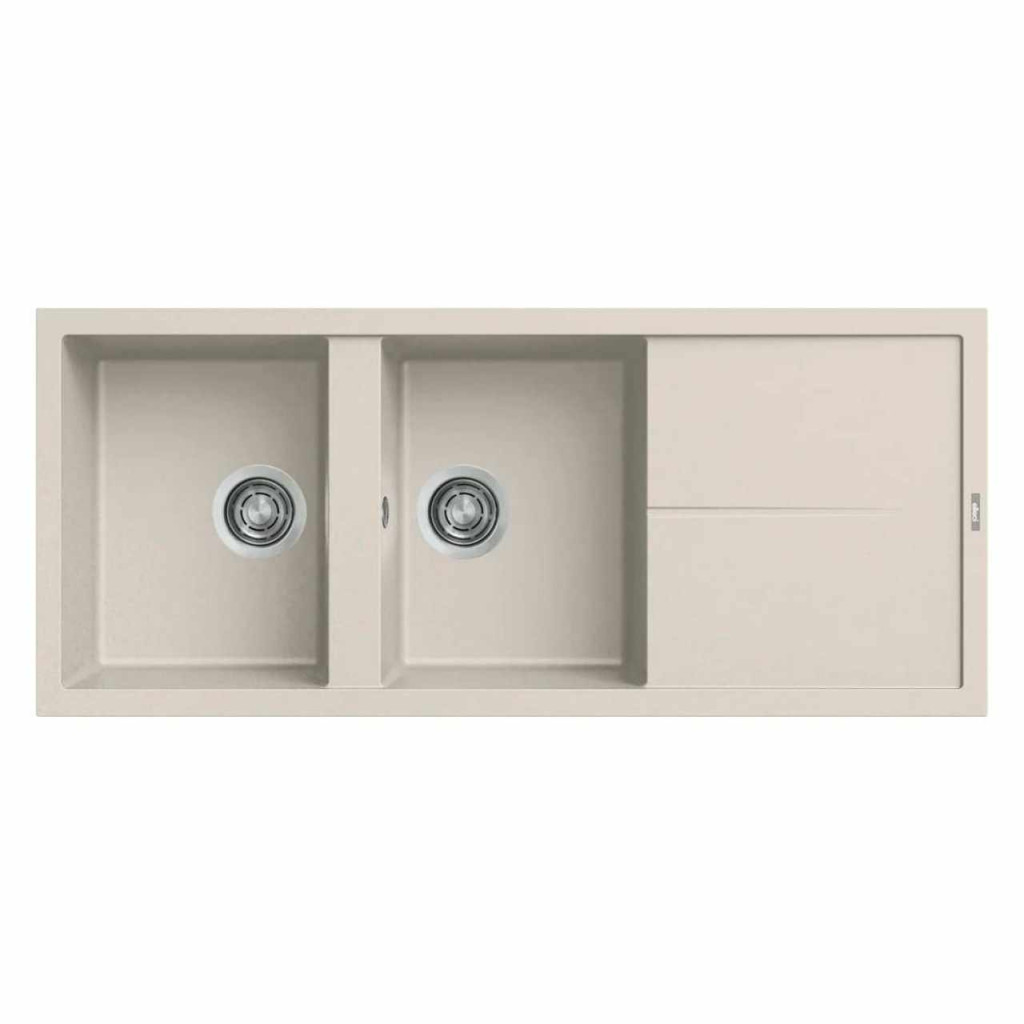 Az ELLECI Unico 500 Granitek kétmedencés mosogatótálca csepptálcával – G39 Bianco Soft színben – a konyha igazi központjává válhat. Két bőséges méretű medencéje lehetővé teszi a mosogatási és előkészítési feladatok egyidejű, kényelmes elvégzését, míg a minimalista megjelenésű csepptálca elegánsan kiegészíti a funkciót. Az oldalra helyezett csaptelep-felület és a teljes hosszon mozgatható kiegészítők harmonikus, akadálymentes munkateret hoznak létre, ahol minden kézre esik.