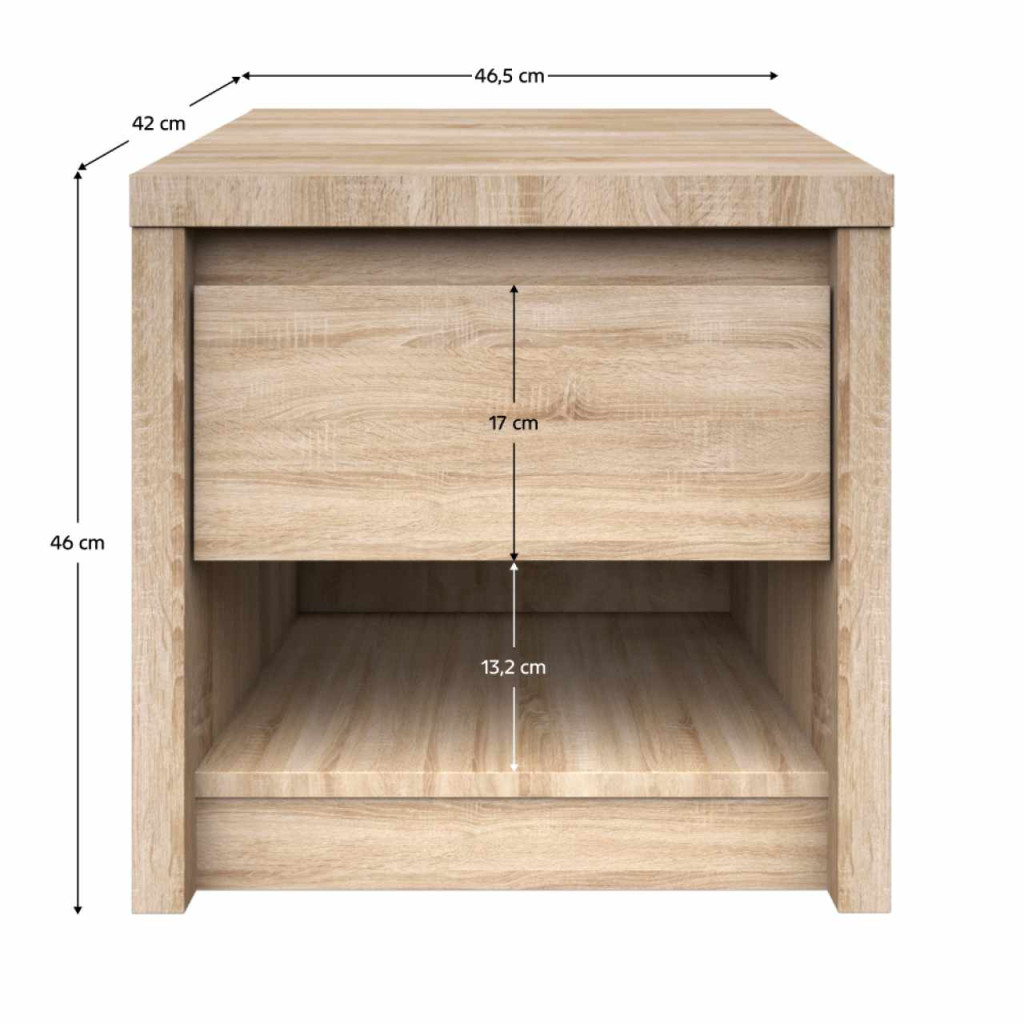 Modern elemes rendszer NortyÉjjeliszekrényAnyag/színváltozat: laminált DTD, sonoma tölgyMéretek (SzéxMaxMé): 46,5x46x42 cmAz elemes bútor többi része is hozzárendelhetőSzétszerelt állapotban szállítjuk