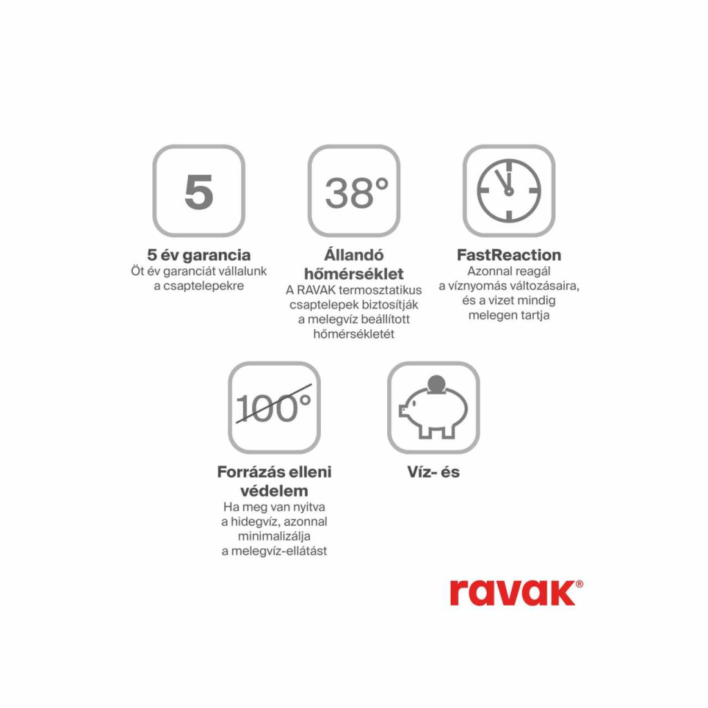 A fürdőszoba egységes megoldásához és design összhangjához javasoljuk, hogy kombinálja az Eleganta csaptelepekkel azonos színkivitelben. A külső tisztításhoz javasoljuk a Ravak Cleaner Chrome tisztítószert.