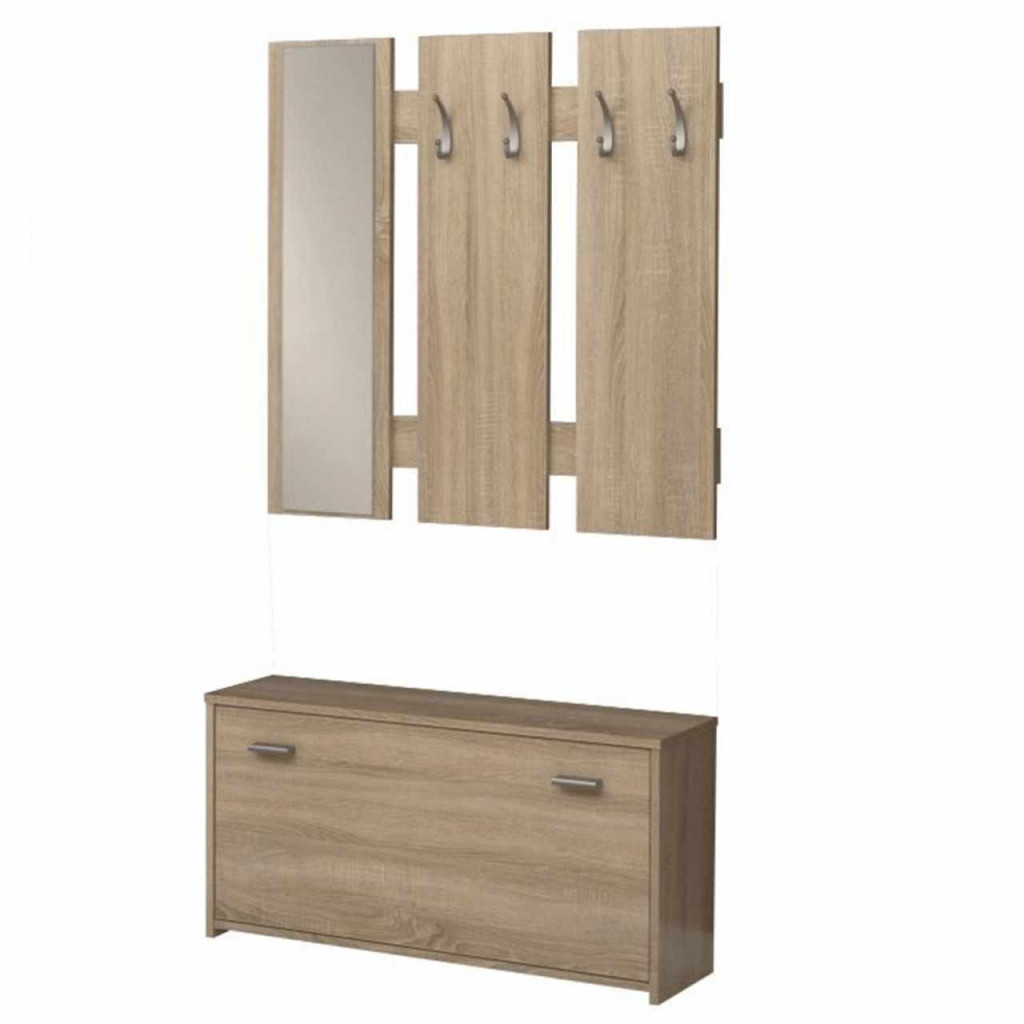 Anyaga: laminált DTD bútorlap Színe: sonoma tölgyfa Méretek (SzéxMéxMa): 91,8x25x200 cm A bútorlap vastagsága: 1,6 cm A fogaspanel magassága: 91,8 cm A cipősszekrény magassága: 46 cm A szerelési útmutató tartozéka a bútornak Minőségi szlovák termék Lapraszerelten szállítva