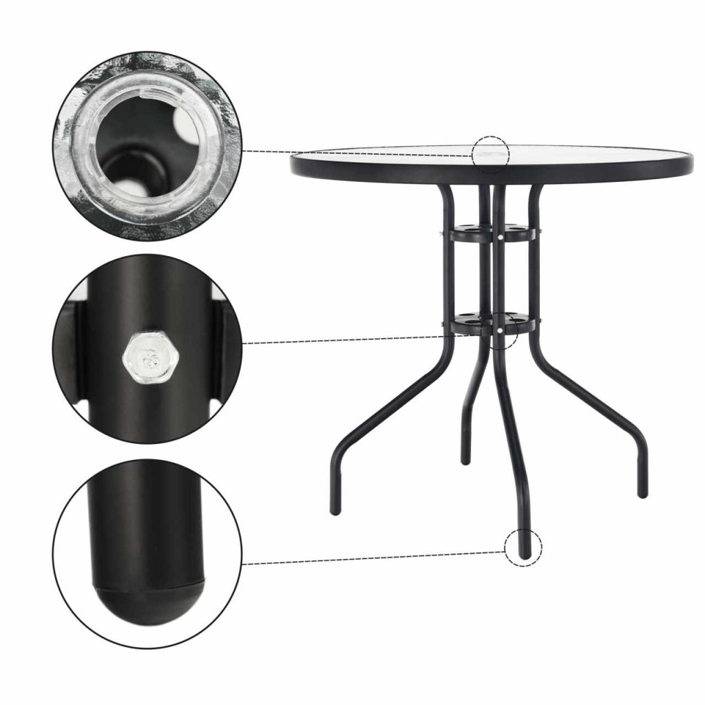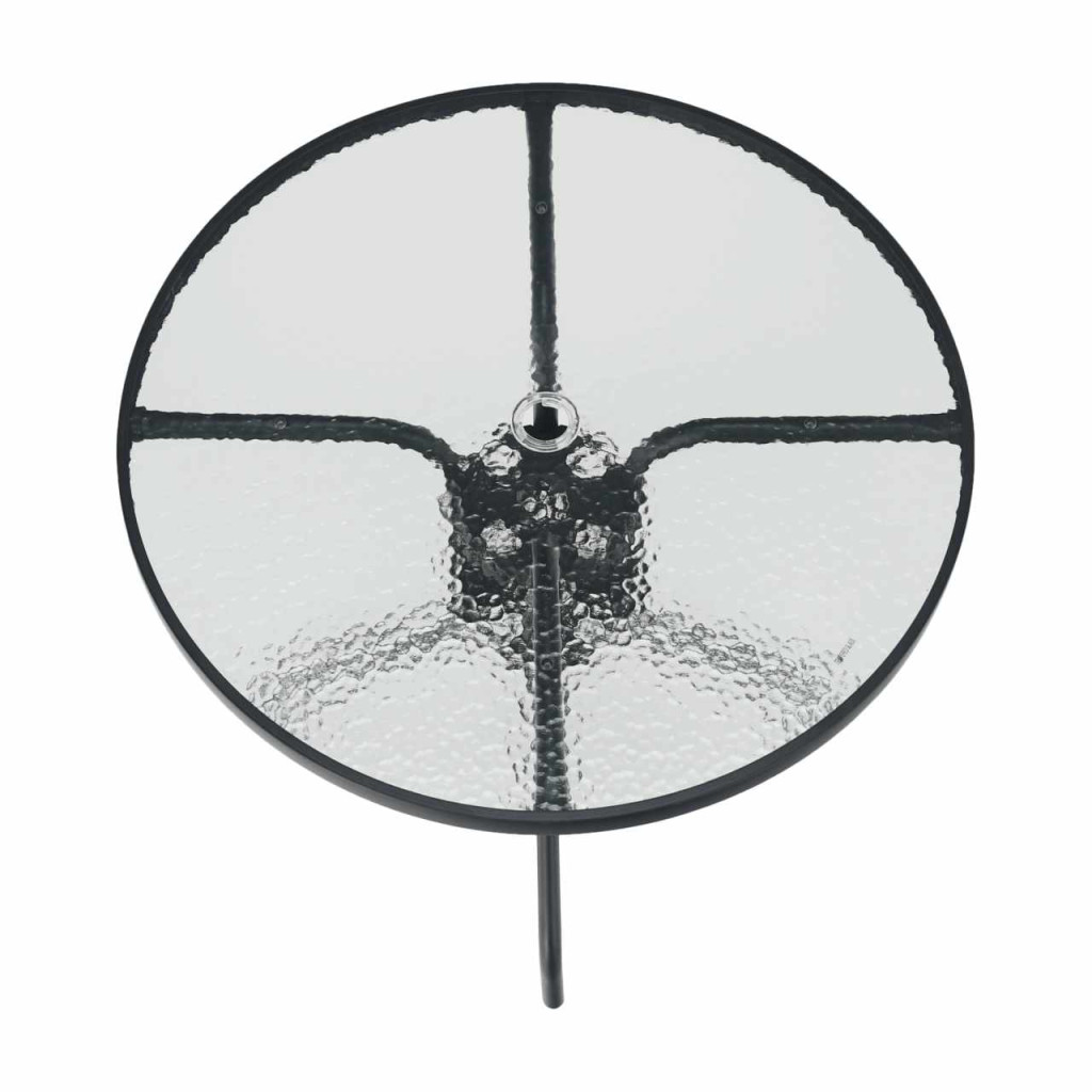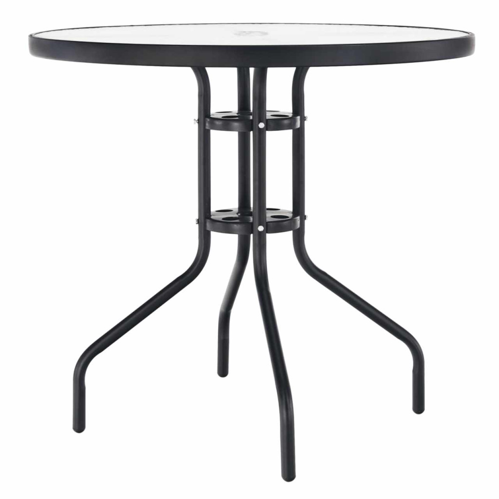 Étkezőasztal kertibútorhoz, BORGEN 2 Anyag: edzett üveg/acél Színe: fekete Méretek (SzéxMéxMa): 80x80x70 cm Lyukkal napernyő számára Kombinálható a LESTRA, DOREN, VARDA, BERGOLA székekkel.