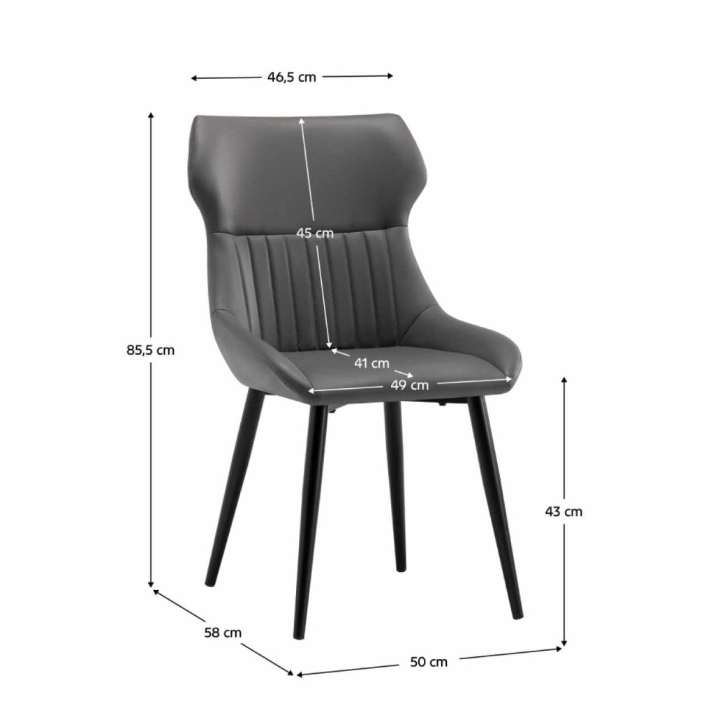 Anyag: ekobőr/fémA szövet kopásállósága a Martindale teszt szerint: 100 000 ciklusSzín: sötétszürke/feketeMéretek (SzxMéxMa): 50x58x85,5 cmÜlés magassága: 43 cmÜlés mélysége: 41 cmÜlés szélessége: 49 cmHáttámla magassága: 45 cmHáttámla szélessége: 46,5 cmModernTeherbírás: 100 kgVonzó megjelenésMinőségi varrásSzétszerelve szállítva