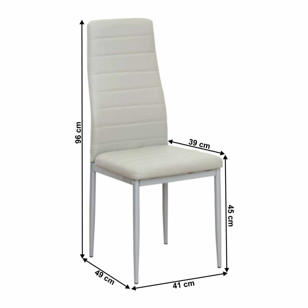 Szék COLETA Anyag: műbőr világosszürke/fém keret, szürke színváltozat, A szövet kopásállósága: 100 000 MartindaleMéretek (SzéxMéxMa): 41x49x96 cm, Ülőrész magassága: 45 cm,Ülés mélysége: 39 cm Teherbírás:90 kg Szállítás szétszerelve.