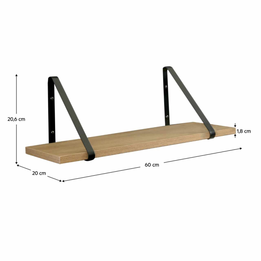 Anyag: laminált MDF/fémMDF vastagsága: 1,8 cmSzín: tölgy/feketeMéretek (SzxMéxMa): 60x20x1,8 cm Magasság a tartókkal: 20,6 cmTeherbírás: 10 kg FaliTárhelyEgyszerű és univerzális kialakítás Modern dizájnAjánljuk a falhoz rögzíteniSzétszerelve szállítva