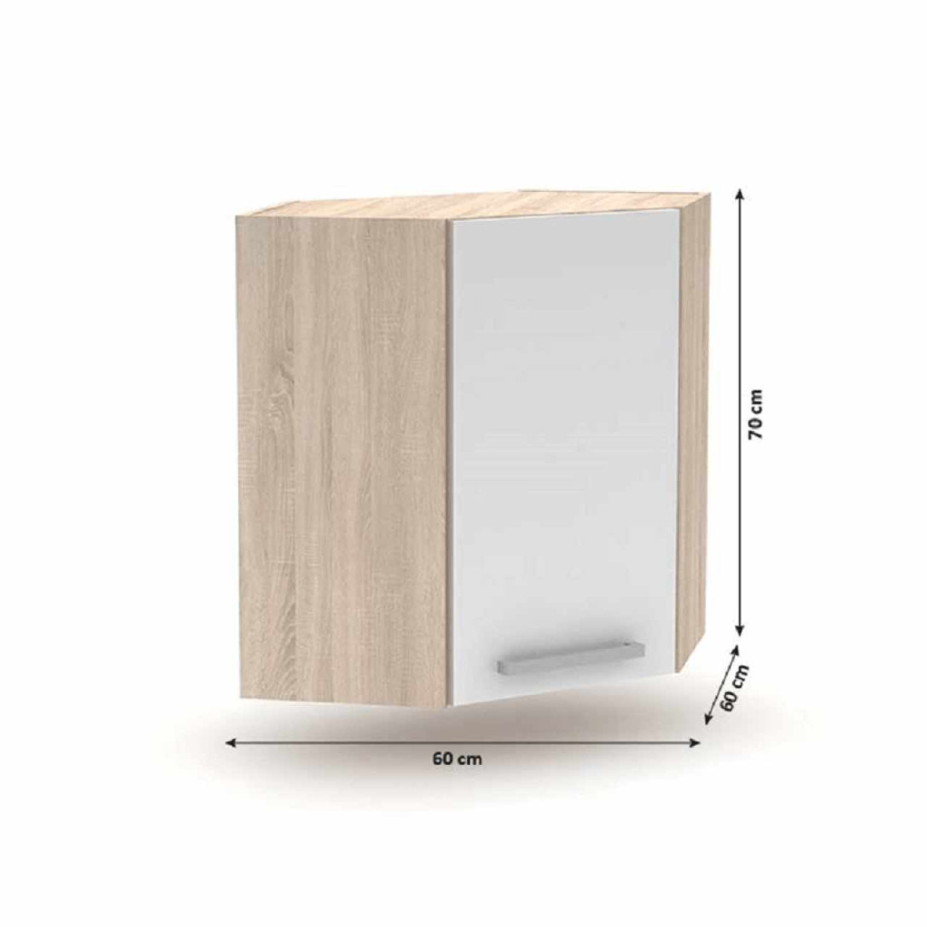 Felsőszekrény sarok 1DV, NOPL-013-OH Anyag: laminált DTD Színe: sonoma tölgy/fehér Méretek (SzéxMéxMa): 60x60x70 cm UniverzálisMinőségi szlovák termék. Szállítás szétszerelve. Az alap konyhasort és az összes alsó szekrényt munkalap nélkül szállítjuk. Vásárolható a munkalap - vastaság 38mm ára 28 900 Ft/fm Vásárolható hozzá univerzális (J/B) mosogató LAY ON.