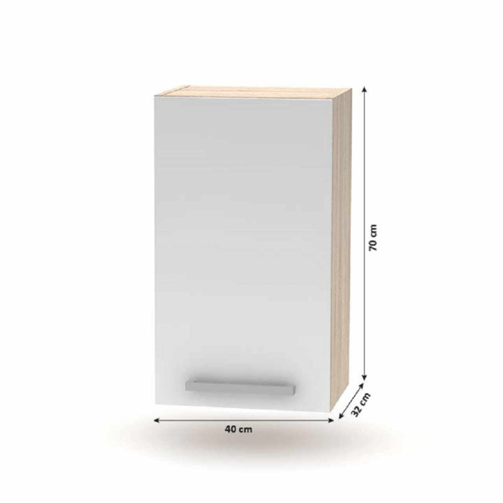 Felsőszekrény 40 1DV, NOVA PLUS NOPL-005-OH Anyag: laminált DTD Színe: sonoma tölgy/fehér Méretek (SzéxMéxMa): 40x32x70 cm Szállítás szétszerelve. Minőségi szlovák termék.Az alap konyhasort és az összes alsó szekrényt munkalap nélkül szállítjuk. Vásárolható a munkalap - vastaság 38mm ára 28 900 Ft/fm Vásárolható hozzá univerzális (J/B) mosogató LAY ON.