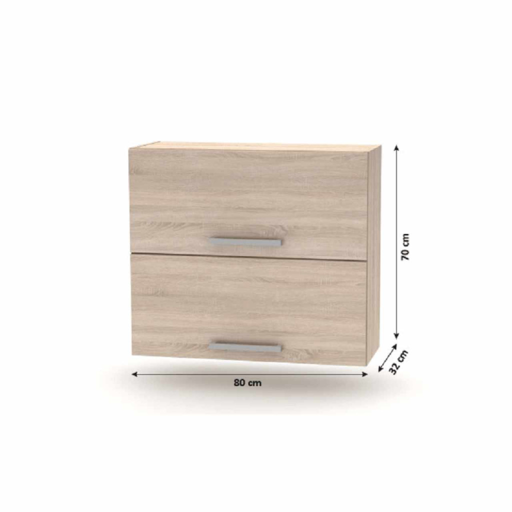 Billenő felsőszekrény 2DV, NOPL-015-VH Anyag: laminált DTD Színe: sonoma tölgy Méretek (SzéxMéxMa): 80x32x70 cm Minőségi szlovák termék. Szállítás szétszerelve. Az alap konyhasort és az összes alsó szekrényt munkalap nélkül szállítjuk. Vásárolható a munkalap - vastaság 38mm ára 28 900 Ft/fm Vásárolható hozzá univerzális (J/B) mosogató LAY ON.