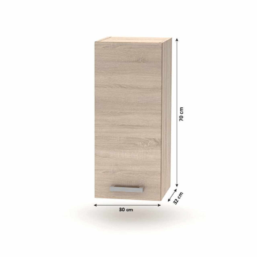 Felsőszekrény 30 1DV, NOVA PLUS NOPL-002-OH Anyag: laminált DTD Színe: sonoma tölgy Méretek (SzéxMéxMa): 30x32x70 cm Szállítás szétszerelve. Minőségi szlovák termék.Az alap konyhasort és az összes alsó szekrényt munkalap nélkül szállítjuk. Vásárolható a munkalap - vastaság 38mm ára 28 900 Ft/fm Vásárolható hozzá univerzális (J/B) mosogató LAY ON.