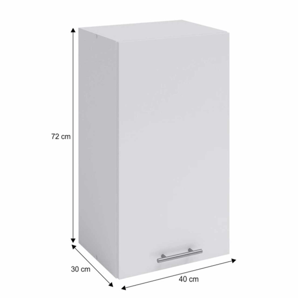 Felsőszekrény W40, Anyag: laminált DTD, Színváltozat: fehér, Méretek (SzéxMaxH): 40x72x30,1 cm. Anyag vastagsága: 16 mm Szétszerelt állapotban szállítjuk A szekrényen előfúrt pántok találhatók, az összeszerelési útmutató csak illusztráció Hozzárendelhető Fabiana Metalic brown szürke munkalap 2,8 cm-es vastagsággal és 60 cm-es szélességgel. Az elemes szekrényeket munkalap nélkül szállítjuk. A munkalap ára 25 500 Ft. Vásárolható univerzális mosogató J/B LAY ONA felső szekrények nem sínre vannak szerelve, hanem kampókra vannak függesztve. A falba szerelhető kampókat nem tartalmazza a csomag, külön kell megvásárolni őket.