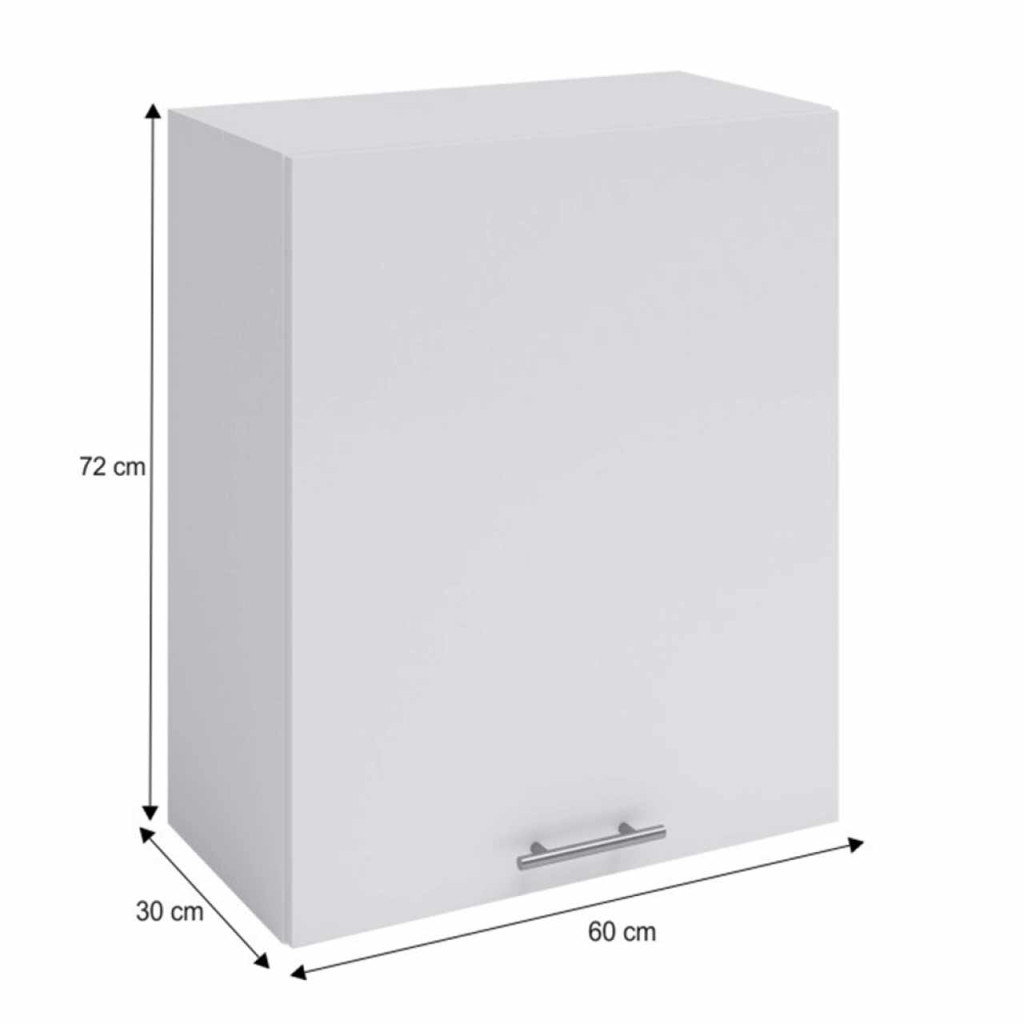 Felsőszekrény W60, Anyag: laminált DTD, Színváltozat: fehér, Méretek (SzéxMaxH): 60x72x30 cm. Anyag vastagsága: 16 mm Szétszerelt állapotban szállítjuk Hozzárendelhető Fabiana Metalic brown szürke munkalap 2,8 cm-es vastagsággal és 60 cm-es szélességgel. Az elemes szekrényeket munkalap nélkül szállítjuk. A munkalap ára 25 500 Ft. Vásárolható univerzális mosogató J/B LAY ONA felső szekrények nem sínre vannak szerelve, hanem kampókra vannak függesztve. A falba szerelhető kampókat nem tartalmazza a csomag, külön kell megvásárolni őket.