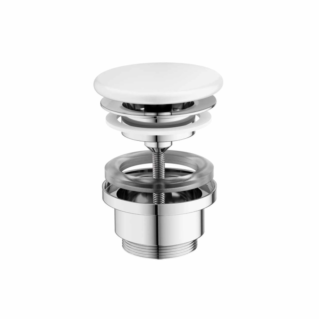 Flat állandó mosdó lefolyó kerámia dugóval fehér kivitelben. Alkalmas túlfolyó nélküli mosdókhoz.