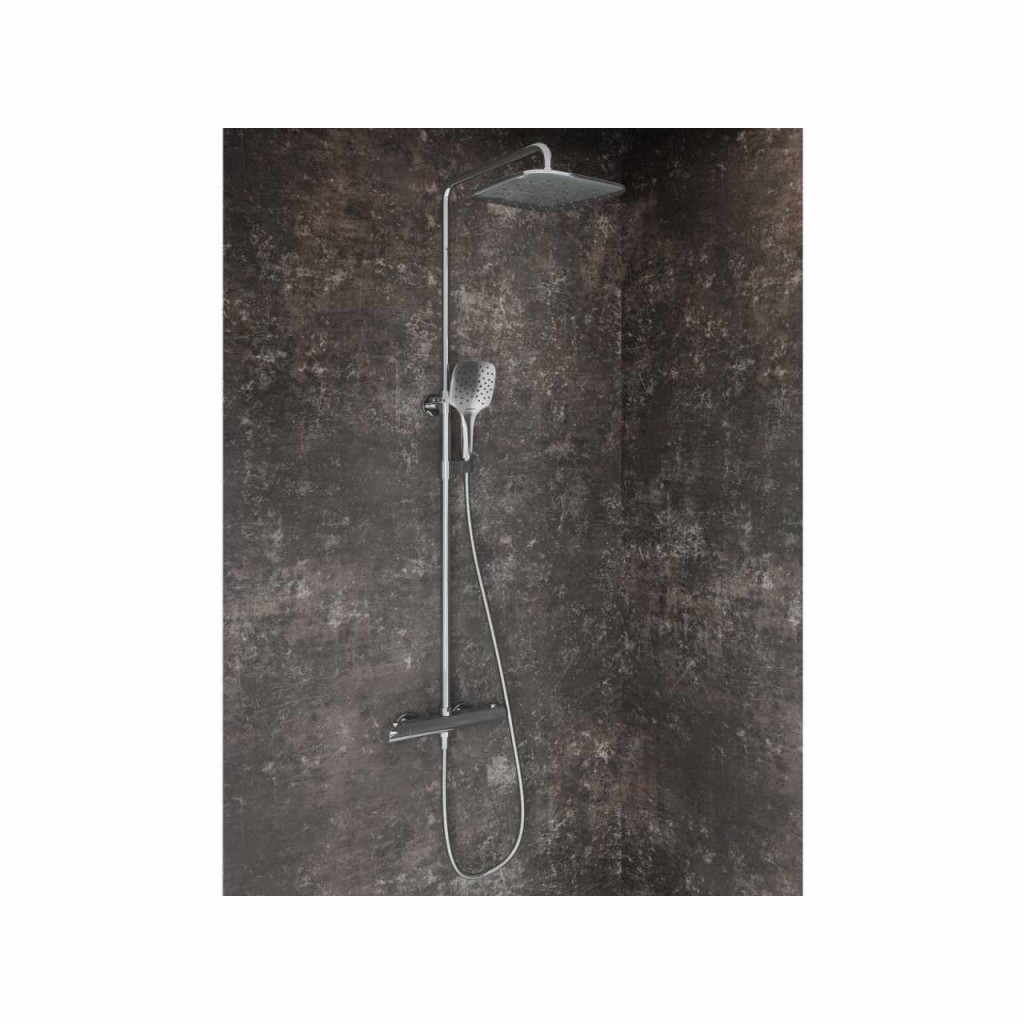 Flat termosztatikus, csúszó zuhanyoszlop zuhanykészlettel. Króm fényes kivitelben.