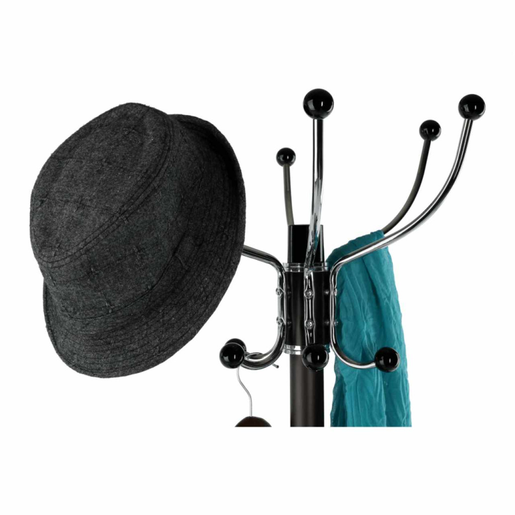 Anyag: fém/márvány Kivitel: barna Méretek (SzéxMéxMa): 37x37x175 cm Márvány alapzat Szétszerelve szállítva.GolyóscsapággyalForgóKampó teherbírása: 2 kg