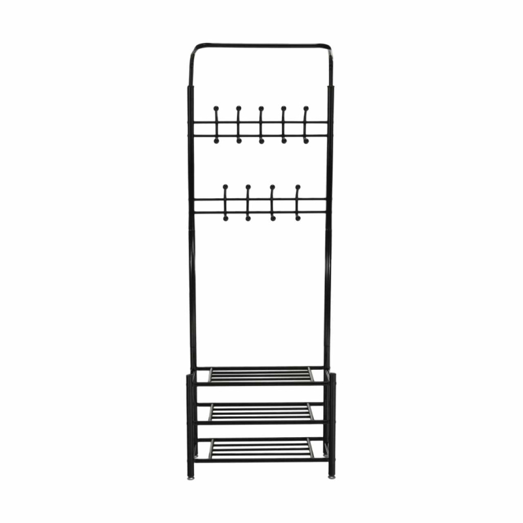 Anyag: fém Szín: fekete Méretek(SzéxMéxMa): 66x30x190 cm Horgokkal Fém polcok Szétszerelve szállítva