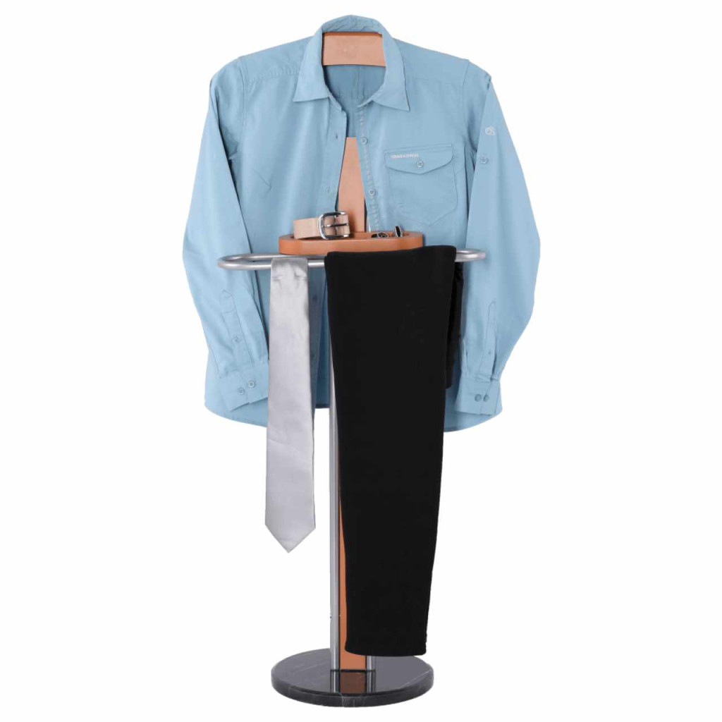Néma szolga Anyag: fém/fa/márvány Változat: fém - ezüst, fa - bükk, márvány ? fekete Méretek: átmérő 30 cm, magasság: 118 cm. Szállítás szétszerelve.