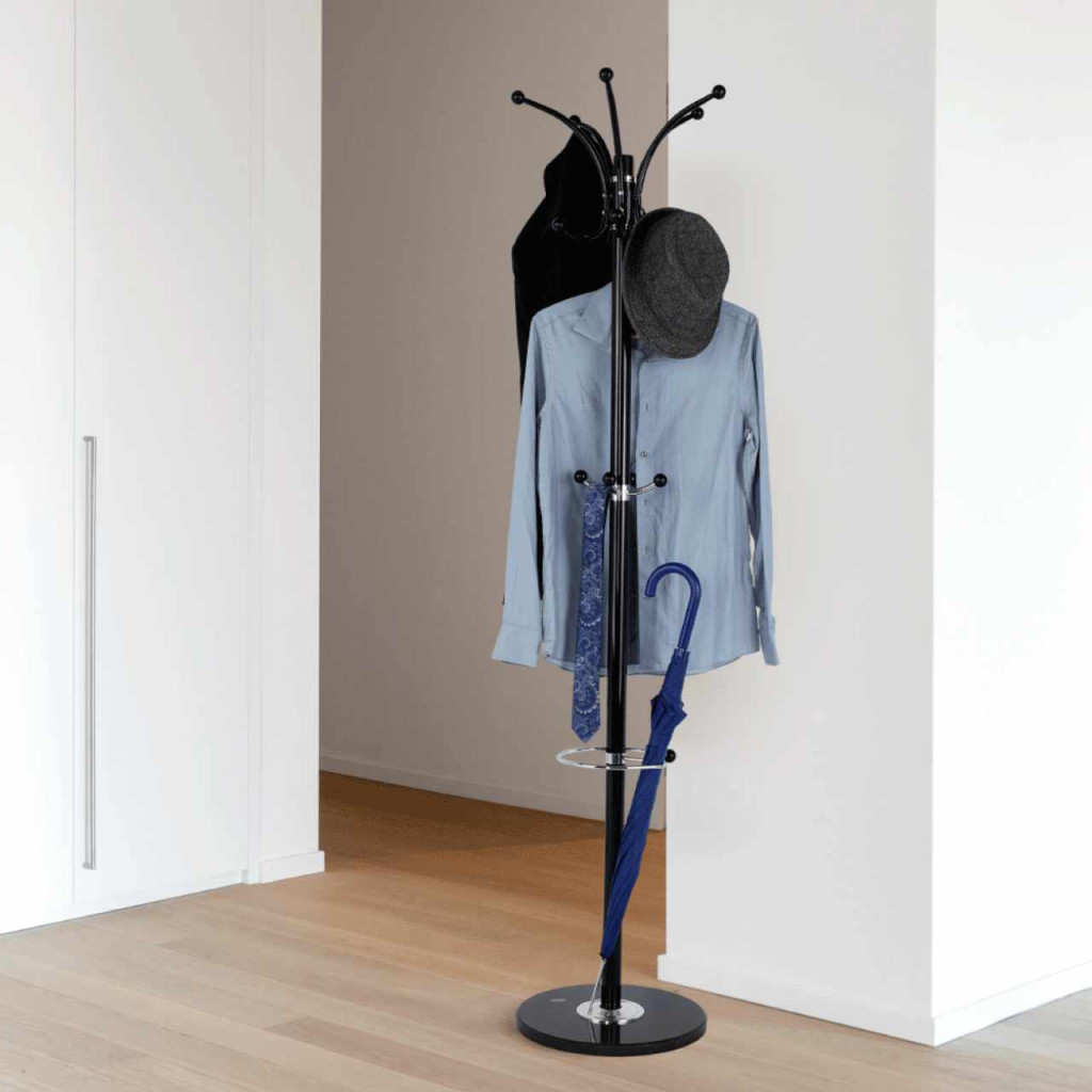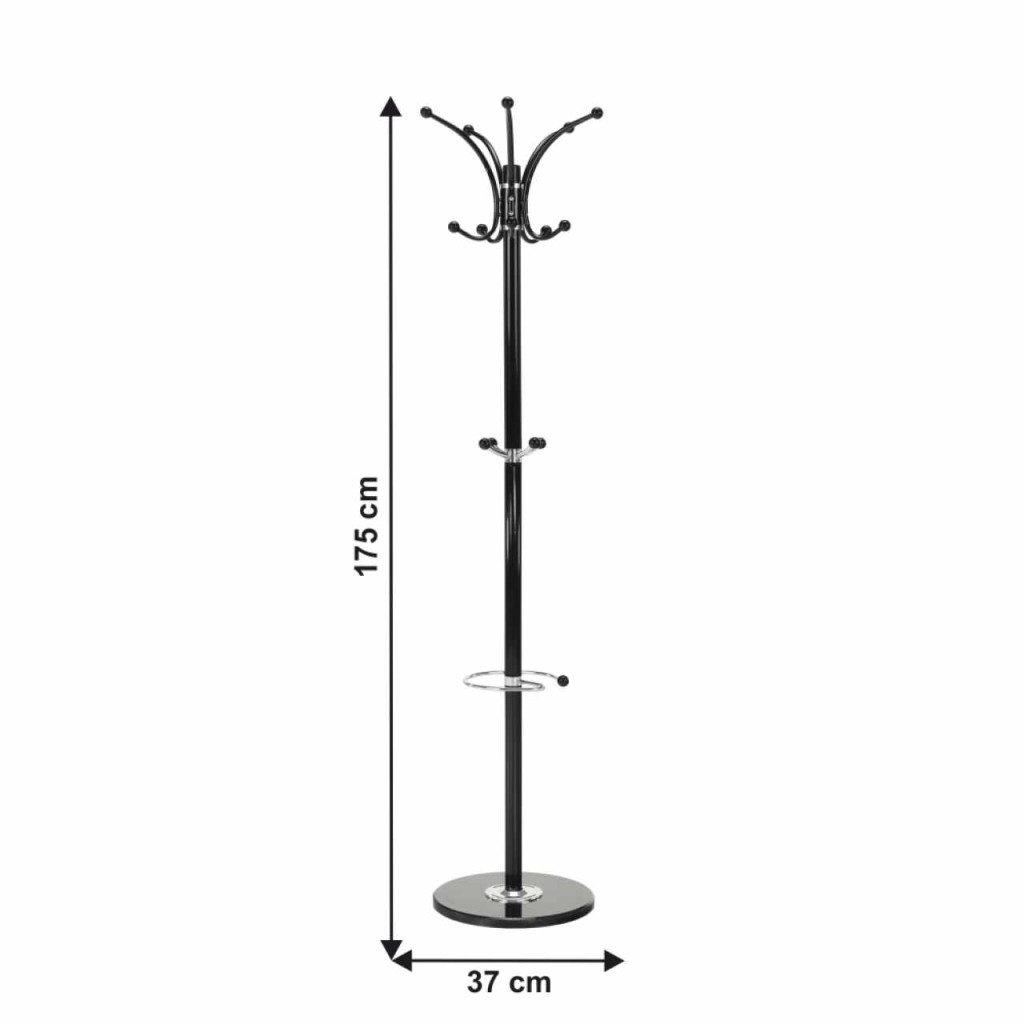 Anyag: fém/ márvány (alapzat) Kivitel: fekete Méretek(SzéxMéxMa): 37x37x175 cm Szétszerelve szállítva.GolyóscsapággyalForgóKampó teherbírása: 3 kg
