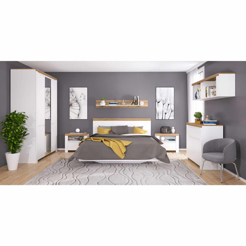 Franciaágy, 160x200, fehér/wotan tölgy, VILGO , Fehér , ABS élek