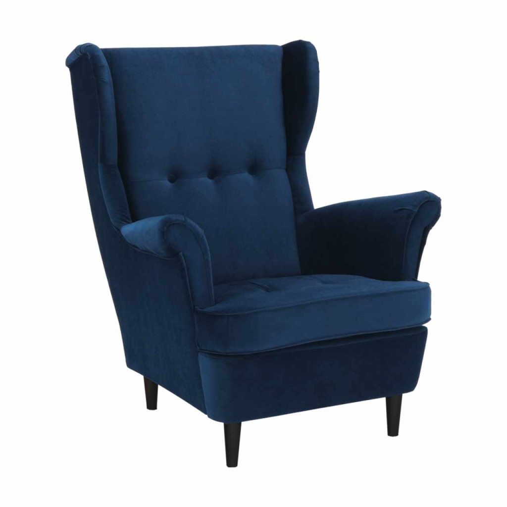 Füles fotel, kék/dió, RUFINO 3 NEW , Kék , Szövet