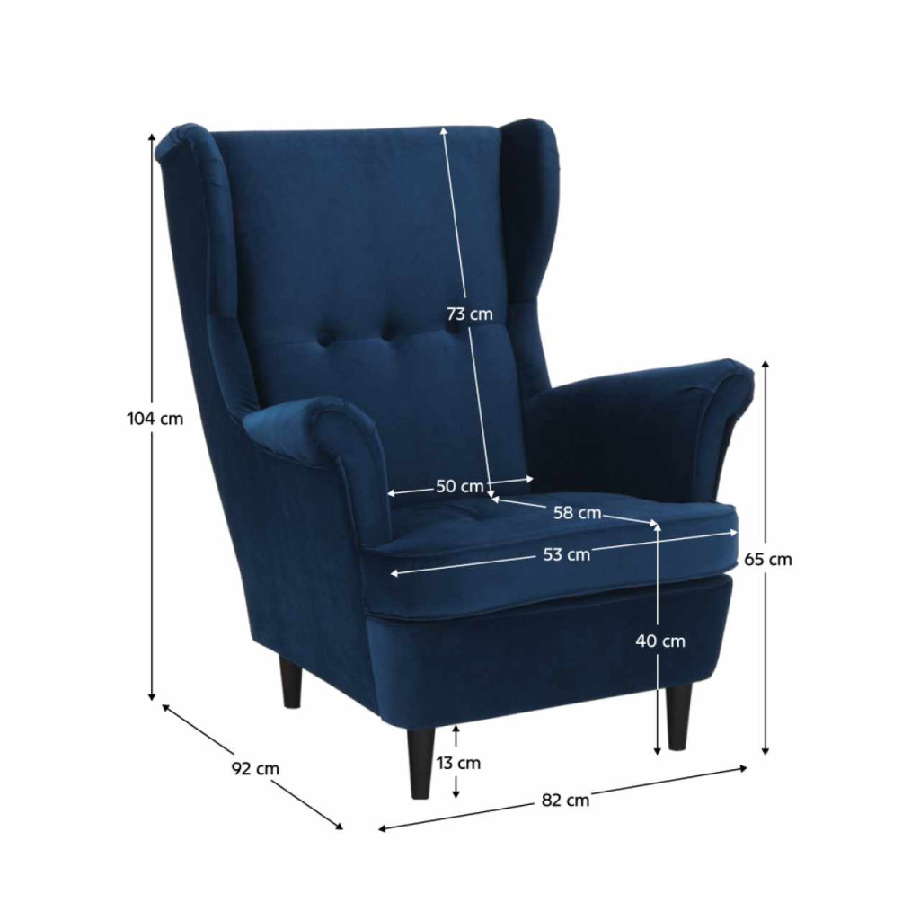 Anyag: szövet Kronos 9/faA szövet kopásállósága: 50 000 MartindaleSzín: kék/dióFotel mérete (SzéxMéxMa): 82x92x104 cmÜlőrész magassága: 40 cmÜlőrész mélysége: 58 cmHáttámla magassága: 73 cmMagasság a talajtól a kartámaszig: 65 cmÜlés szélessége: 53 cmAlsórész magassága a talajtól: 13 cmFa lábakA lábak színe különbözhetSzállítás szétszerelve