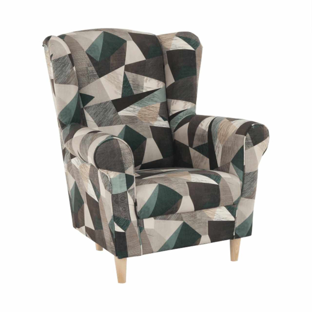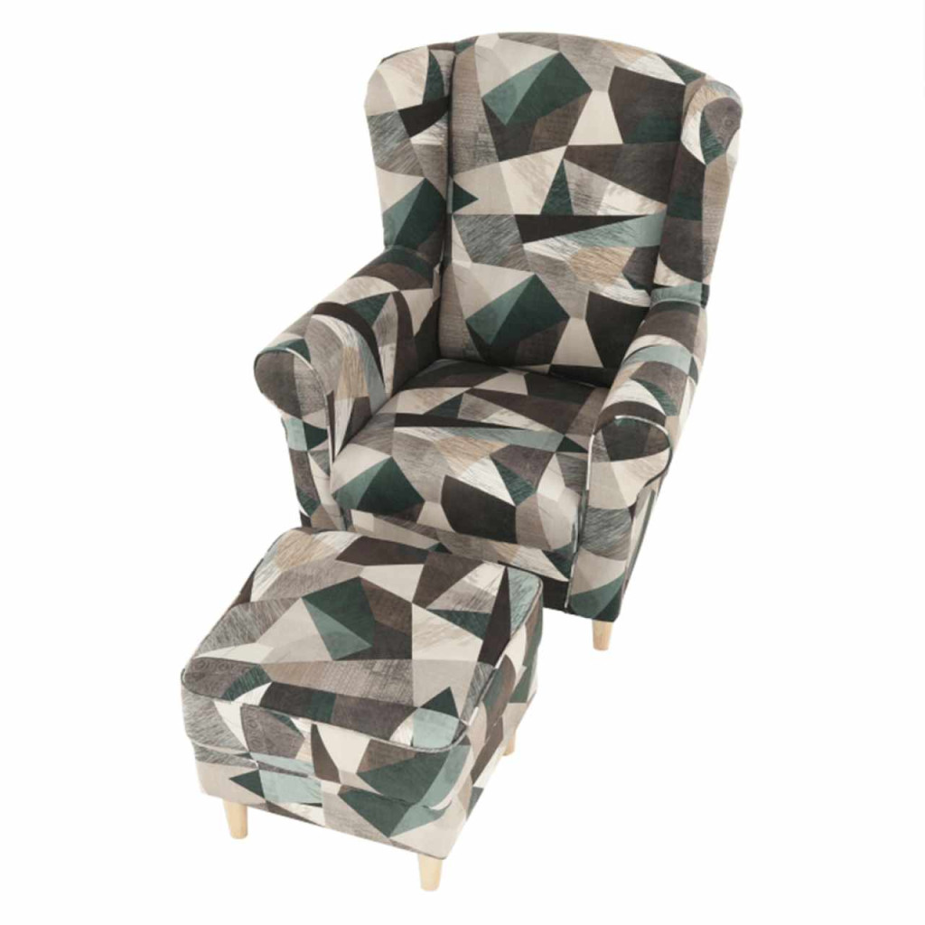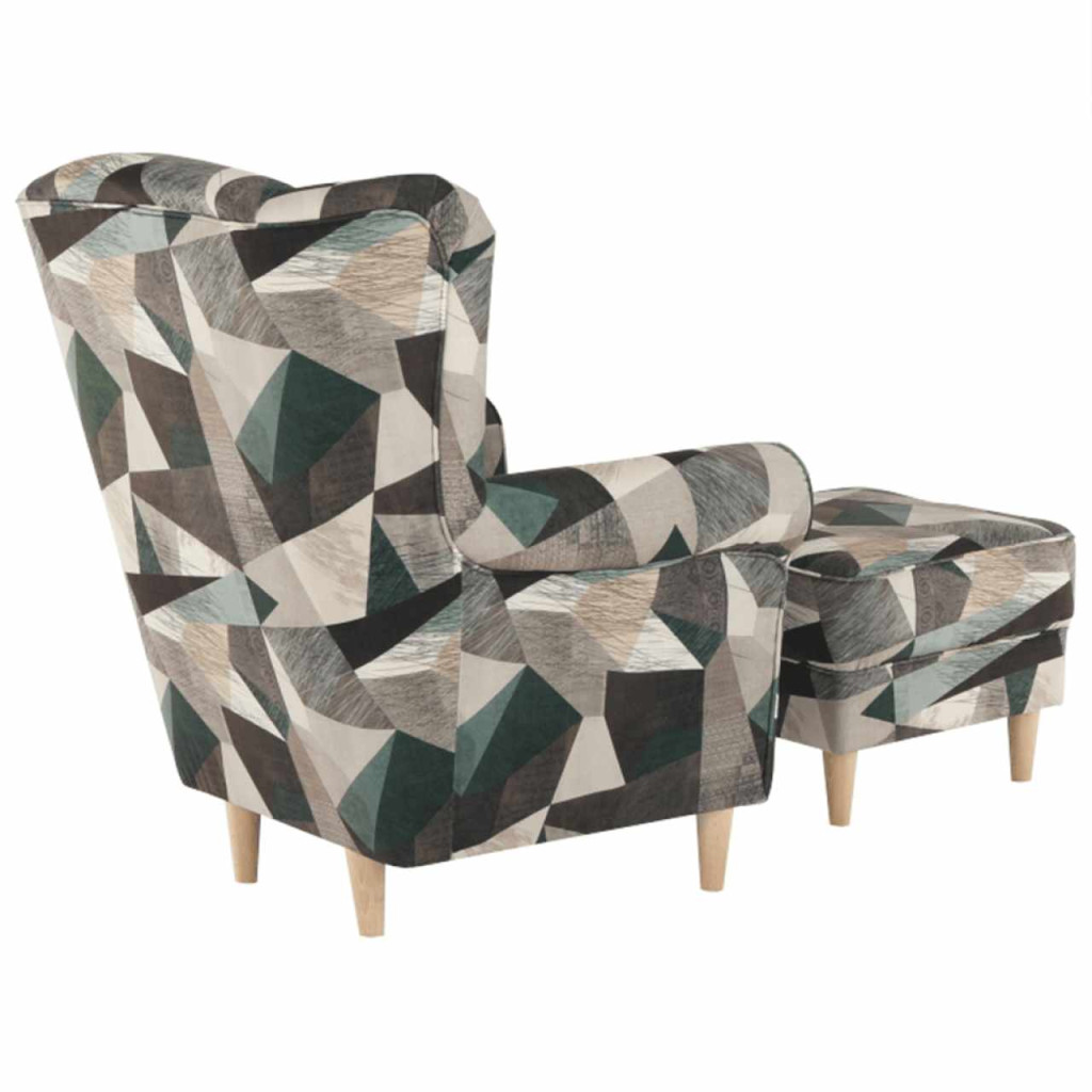 Füles fotel puffal, szövet barna-zöld minta, ASTRID