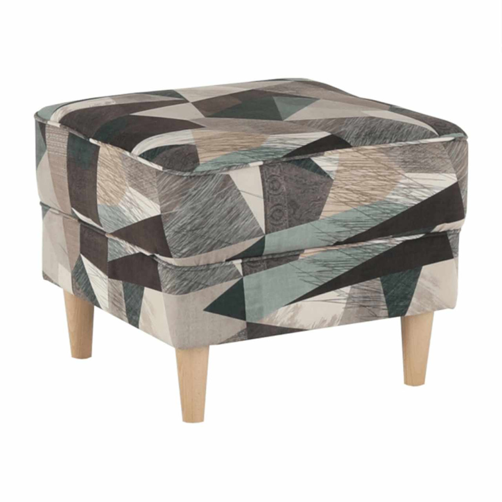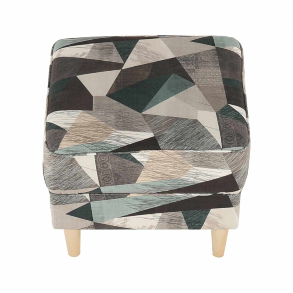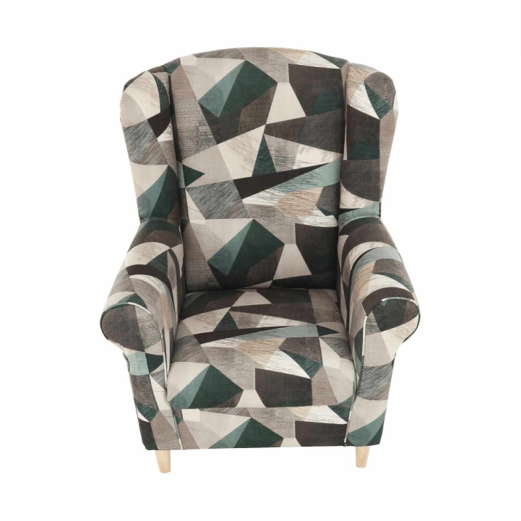 Füles fotel puffal, szövet barna-zöld minta, ASTRID