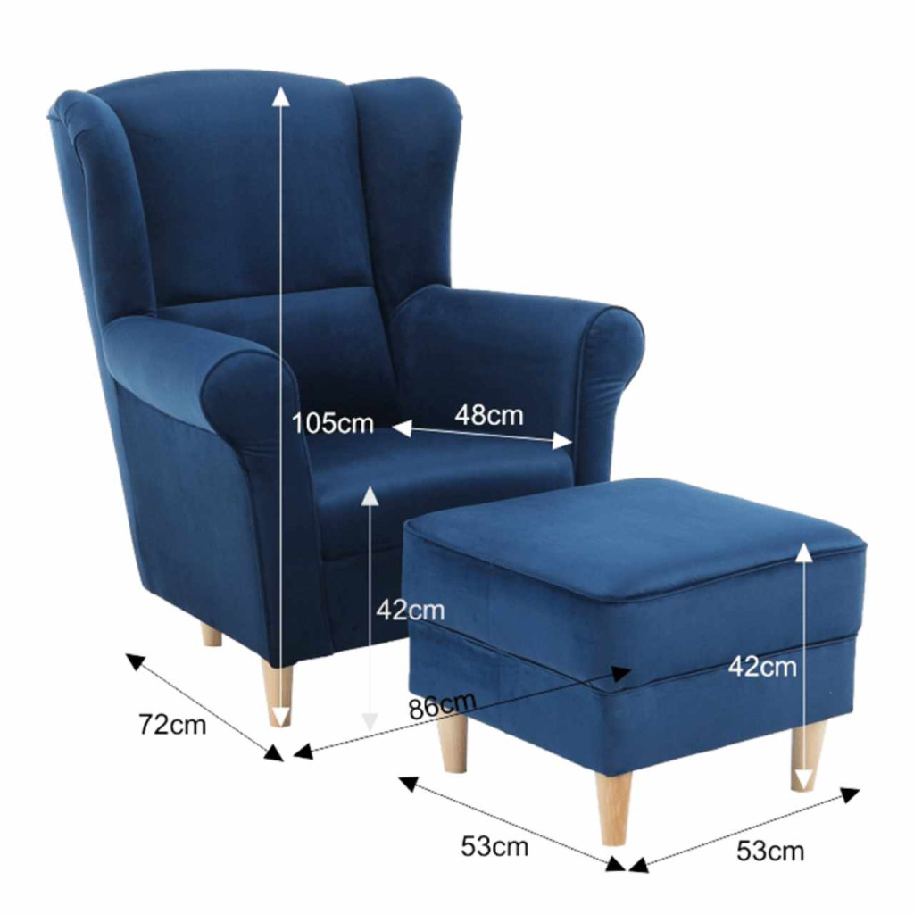 Kényelmes fotel - füles puffal változat: Riviera kék szövet- fa lábak. A szövet kopásállósága: 90 000 Martindale Méretek (SzéxMaxMé): Fotel - 86x105x82 cm, Puff - 53x42x53 cm, Szállítás szétszerelve. Megrendelhető Astrid Alova szövet színváltozataiban ára 179 500 Ft vagy Soro szövetből ára 181 900 Ft.Egyedi megrendelés esetén szükség van az adott összegnek a 20%-át befizetni,mint előleg. Az előleg befizetése után az Ön követelményét benyújtjuk a gyártónak. Szállítási idő 6-8 hét.