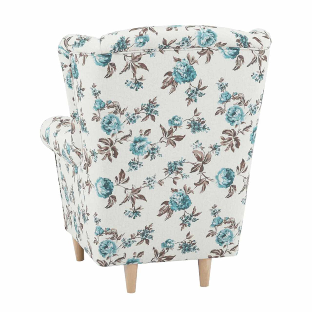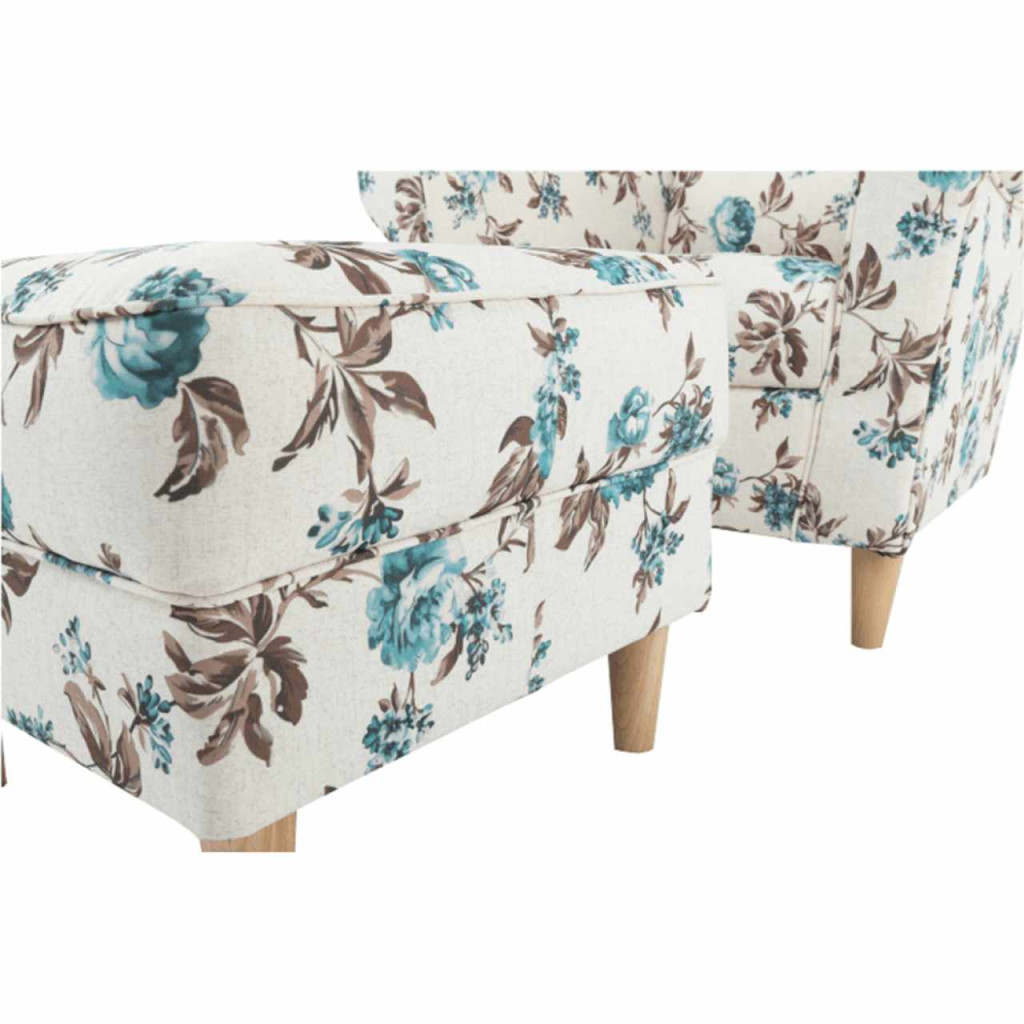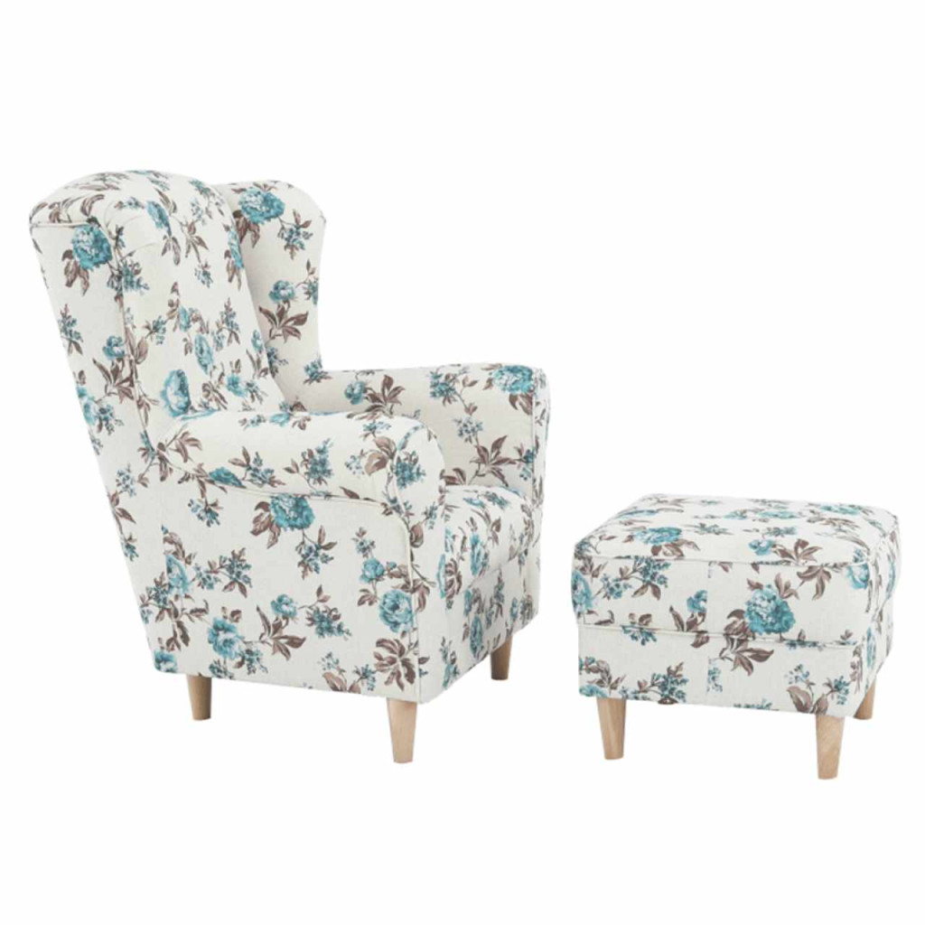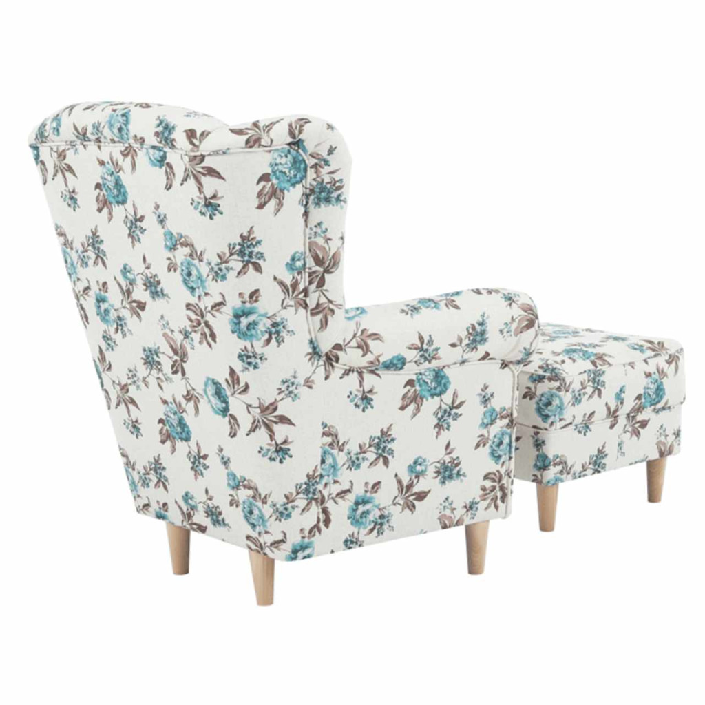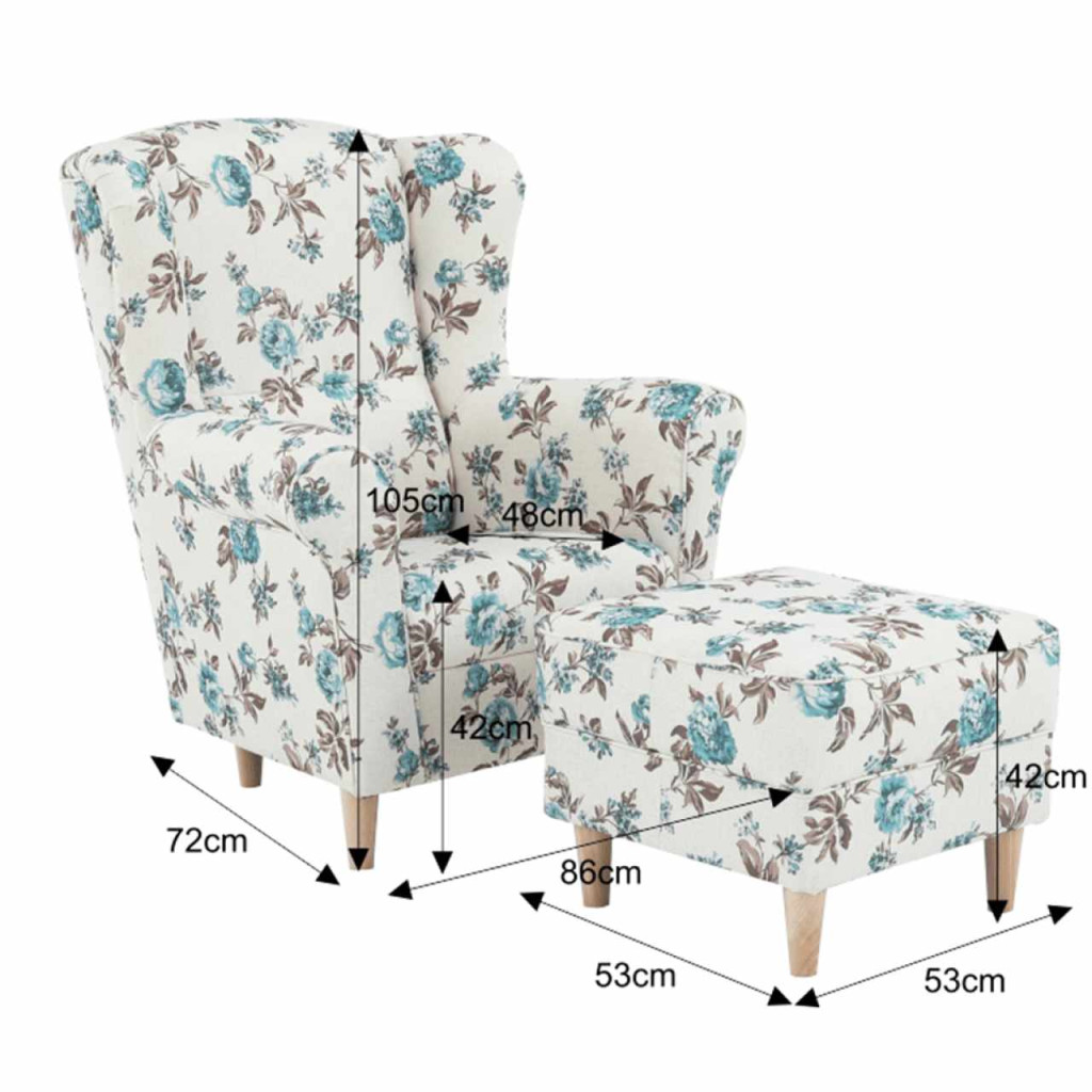 Kényelmes füles fotel puffal, Változat: szövet butterfly 1 - bükk színű falábak, A szövet kopásállósága: 85 000 Martindale Méretek (SzéxMaxMé): fotel - 86x105x82 cm, puff - 53x42x53 cm,