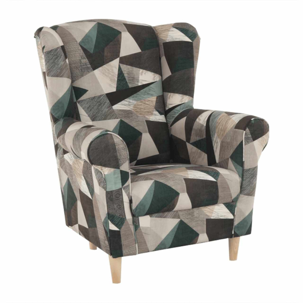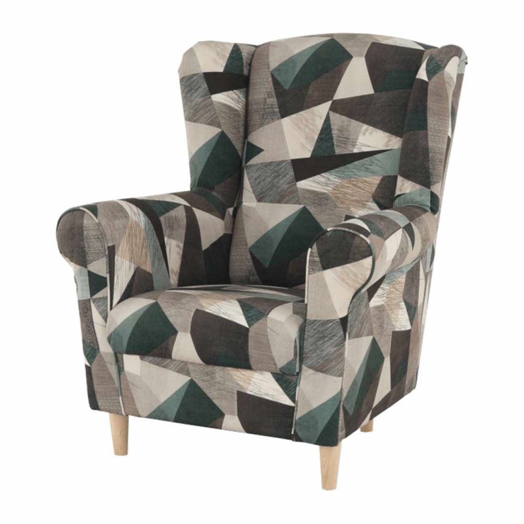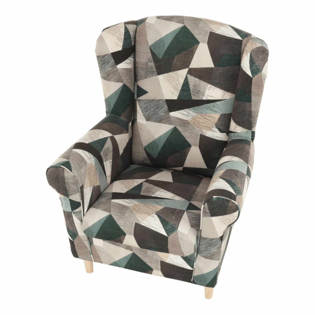 Füles fotel, szövet barna-zöld minta, CHARLOT