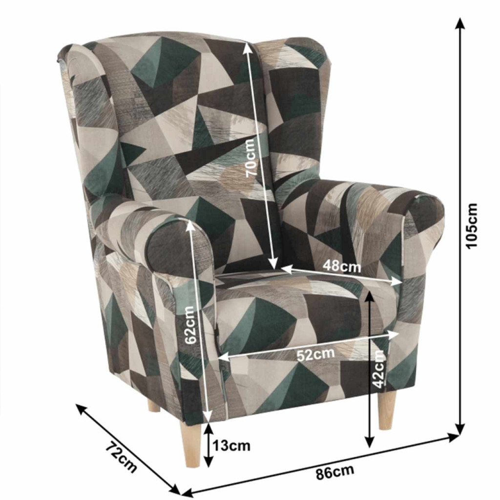 Fotel-füles CHARLOT Holm barna-zöld szövetben mintával. Fa lábak. A szövet kopásállósága: 90 000 Martindale Méretek (SzéxMéxMa): 86x82x105 cm Háttámla magassága: 70 cm Kartámla magassága: 62 cm Szállítás szétszerelve. Megrendelhető Charlot Alova szövet színváltozataiban ára 143 900 Ft vagy Soro szövetből ára 147 500 Ft, Coral szövet színváltozataiban ára 154 500 Ft. Egyedi megrendelés esetén szükség van az adott összegnek a 20%-át befizetni mint előleg. Az előleg befizetése után az Ön követelményét benyújtjuk a gyártónak. Szállítási idő 8-10 hét.