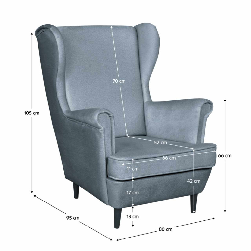 Kárpit anyaga: Element szövetA szövet kopásállósága a Martindale teszt szerint: 50 000 ciklusKárpit színe: szürke kék 23Fotel méretei (SzxMéxMa): 80x95x105 cmÜlés mélysége: 52 cmÜlőrész méretei: 70 cmMagas támlaHáttámla magassága: 73 cmMagasság a talajtól a kartámaszig: 66 cmfából készült lábakLábak színe: wengeAz alsó tér magassága a padlótól: 13 cmTeljesen kárpitozottTeherbírás: 120 kgSzétszerelve szállítva