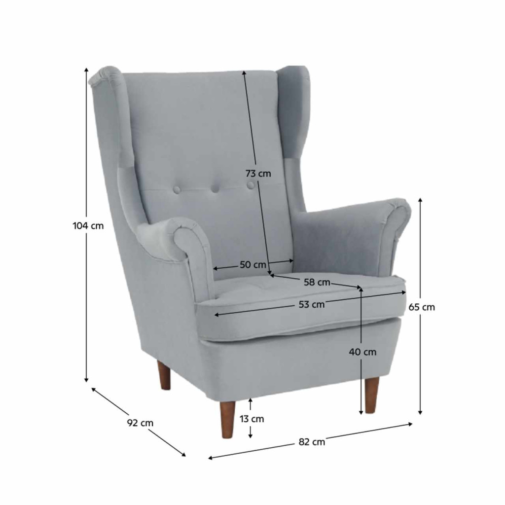 Anyag: szövet Paros 5/faA szövet kopásállósága: 50 000 MartindaleSzín: világosszürke/dióFotel mérete (SzéxMéxMa): 82x92x104 cmÜlőrész magassága: 40 cmÜlőrész mélysége: 58 cmHáttámla magassága: 73 cmMagasság a talajtól a kartámaszig: 65 cmÜlés szélessége: 53 cmAlsórész magassága a talajtól: 13 cmFa lábakA lábak színe különbözhetSzállítás szétszerelve