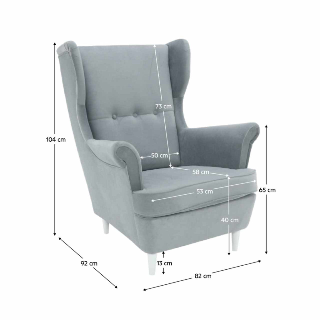 Anyag: szövet Trinity/faA szövet kopásállósága: 55 000 MartindaleSzíne: világosszürke/fehérfotel mérete (SzéxMéxMa): 82x92x104 cmÜlőrész magassága: 40 cmÜlőrész mélysége: 58 cmA láb magassága: 13 cmHáttámla magassága: 73 cmMagasság a talajtól a kartámaszig: 65 cmÜlés szélessége: 53 cmFa lábakSzállítás szétszerelve