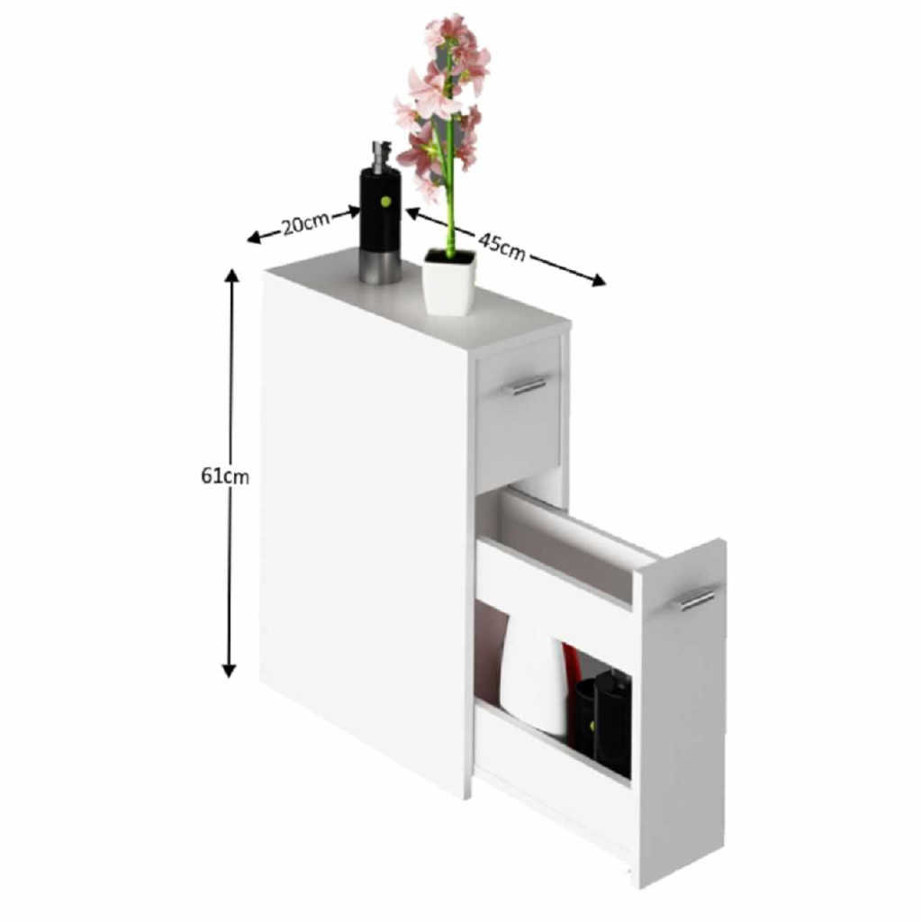"Fürdőszoba szekrény NATALI TYP 7 Anyag: DTD laminált Szín: fehér Méretek (SzéxMéxMa): 20x45x61 cm Anyag vastagság: 16 mm Bontásban szállítva."