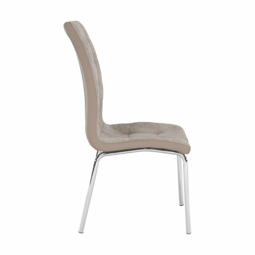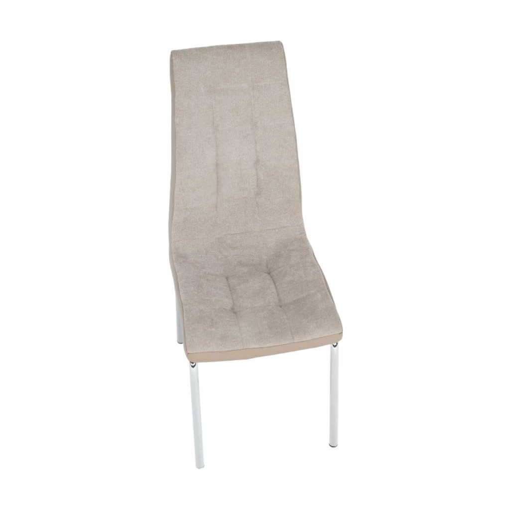Étkezőszék GERDA NEW Anyaga: szövet/textilbőr/króm A szövet kopásállósága: 50 000/100 000 MartindaleSzíne: bézs/króm Méretek (SzéxMéxMa): 42x58x103cm Terhelhetőség: 110 kg Lapraszerelten szállítva.