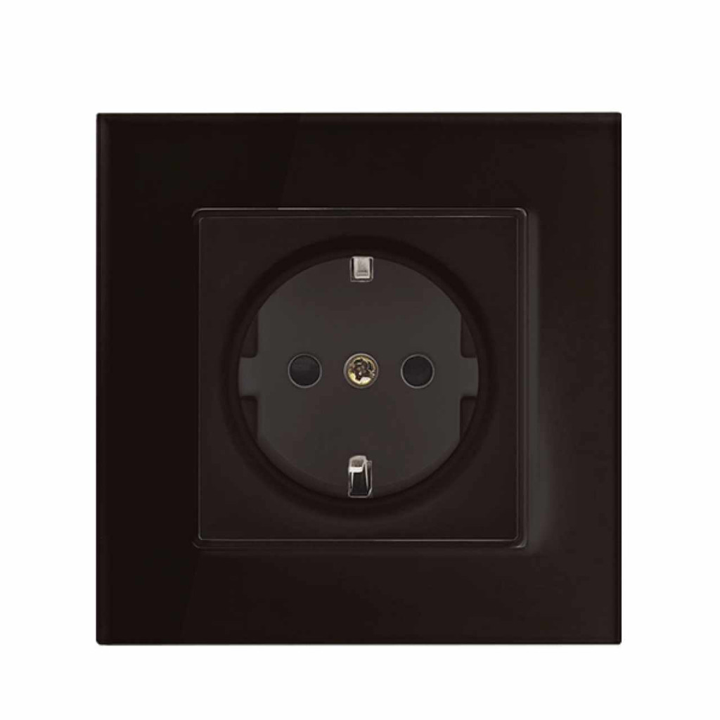 GERMAN TYPE SOCKET 16A GLASS FRAME BLACK+C. BOX