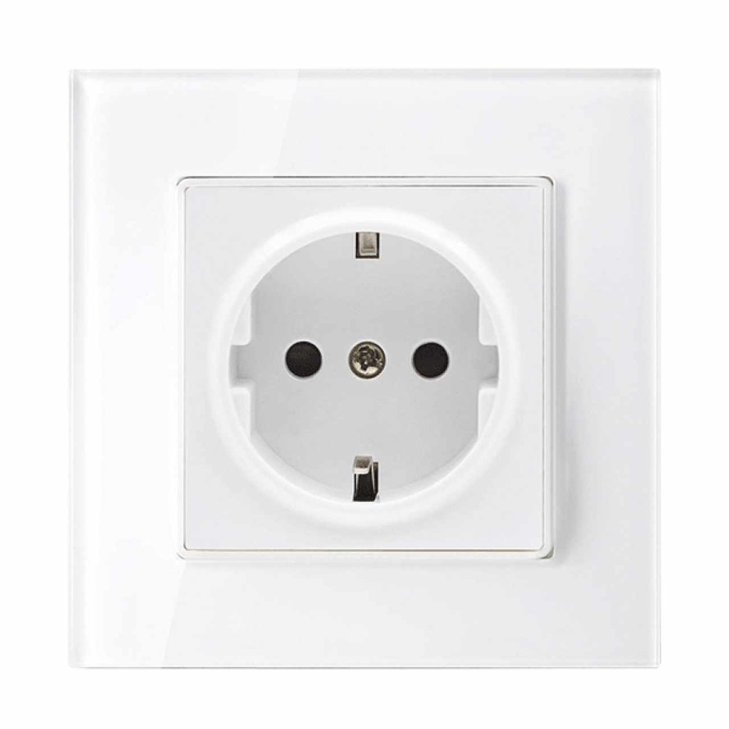 GERMAN TYPE SOCKET 16A GLASS FRAME WHITE+C. BOX