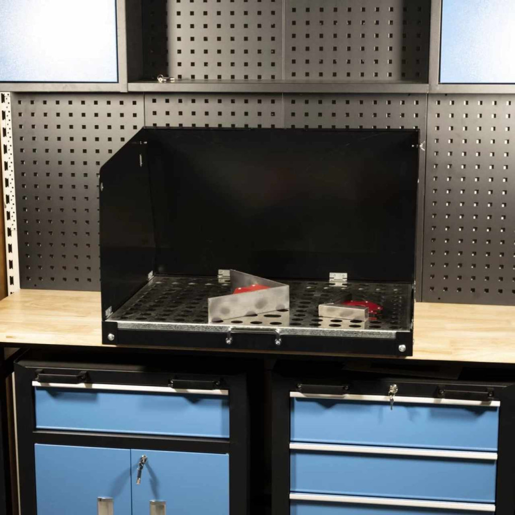 valamint a hegesztési és csiszolási szikrák ellen, amelyek potenciális tűzveszélyt jelentenek. A munka elvégzése után a hegesztőkabin néhány egyszerű lépésben összecsukható és rendkívül helytakarékosan tárolható. A praktikus fogantyú megkönnyíti a szállítást, a kivehető rács pedig könnyű tisztítást tesz lehetővé.