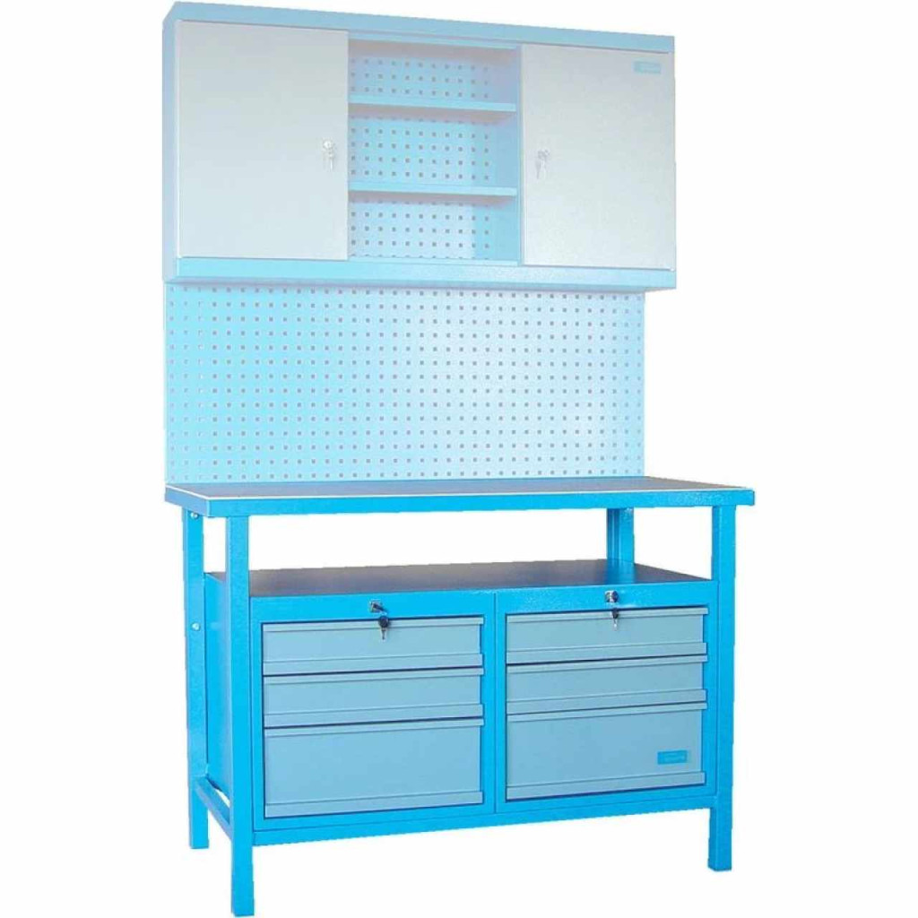Munkapad P 1200 SS , Munkalap szélessége: 1200 mm|Munkalap mélysége: 600 mm|Munkalap vastagsága: 38 mm|Munkamagasság: 850 mm|Asztalváz szélessége: 1100 mm|Fiókok száma: 2 darab (nagy)|A fiók szélessége: 430 mm|Fiókmagasság: 165 mm|A fiók mélysége: 520 mm|Kék szín RAL: 5015|Szürke szín RAL: 7001|Méretek WxDxH: 1200 x 600 x 850 mm|Nettó súly: 89,4 kg|Bruttó súly: 89,95 kg