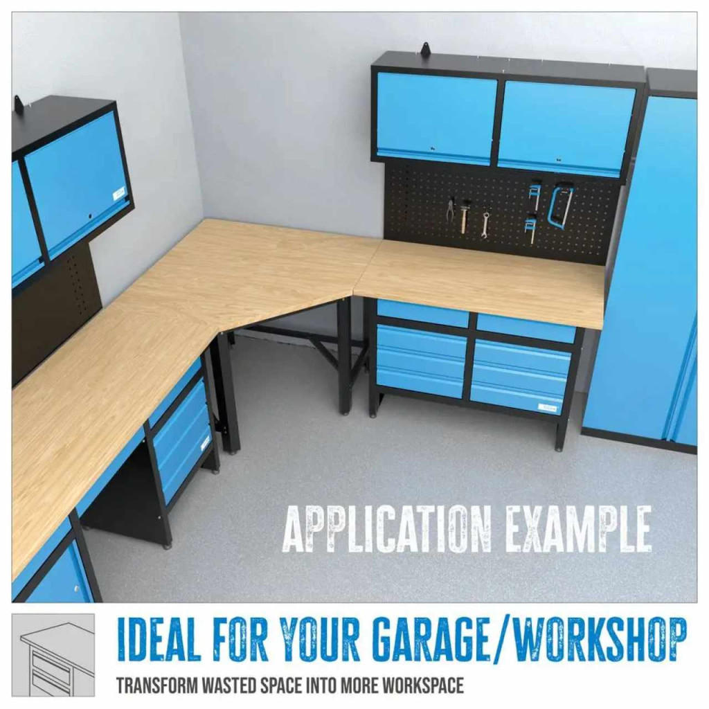 A Güde Eco Line zseniális kiegészítője - a GE 600E sarokmodul. Ez az ötszögletű csatlakozás lehetővé teszi a helyiség egyik sarkának optimális kihasználását, a gyakran elvesztegetett helyet további stabil munkafelületté alakítva. A termékcsalád többi munkapadjával kombinálva tökéletes megoldássá válik garázsának vagy műhelyének berendezéséhez. - Gumifából készült, ragasztott, nagyon kemény (kb. 50%-kal keményebb, mint a tölgy), nedvességre érzéketlen, könnyen tisztítható munkalap - Az asztal max. 200 kg-ig terhelhető - Munkamagasság: 850-885 mm a szintező lábaknak köszönhetően - Az Eco Line munkapadokkal mindkét oldalon egyformán meghosszabbítható - Csatlakozási pont (Eco Line munkapadok mélysége): 600 mm - Összeszereletlenül és kétrészes munkalappal szállítva eco Line munkapadokhoz alkalmas: - #40470 GW 2T munkapad - #40471 GW 3/1 munkapad - #40472 Munkapad GW 2/2 - #40473 Workbench GW 5/1 - #40474 Workbench GW 8S - #40480 Workbench GW 6/1 XL - #40481 Workbench GW 6/2 XL - #40482 Workbench GW 1/1 S Műszaki adatok: Széles munkalap: Anschluss 600 mm Mélység munkalap: variierend mm Munkalap vastagsága: 30 mm Munkamagasság: 850-885 mm Anyag: Gummibaumholz, Stahl alkalmas az art.: 40470-4, 40480-2 Hosszúság: 1.095 mm Széles: 1.095 mm Magasság: 850 mm Bruttó tömeg: 34,6 kg