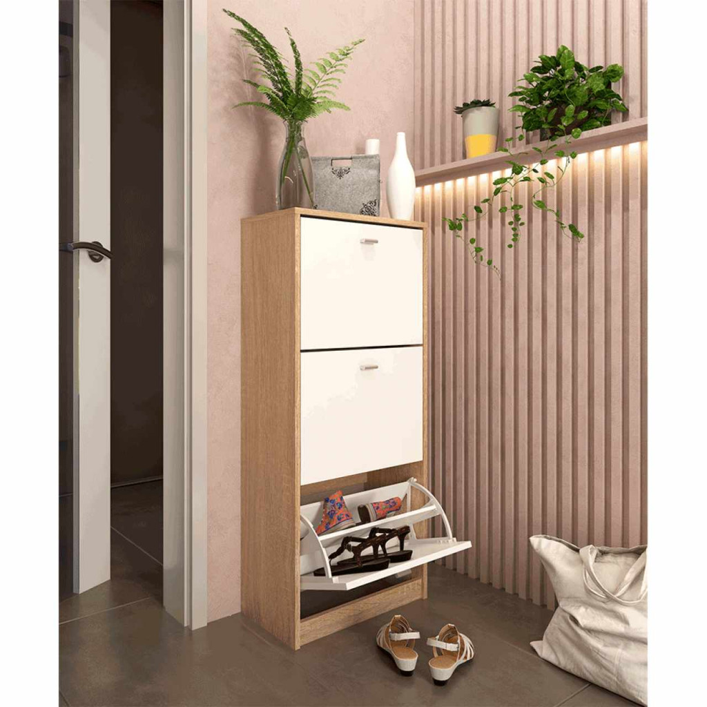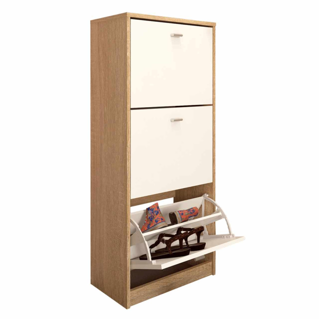 Háromrészes cipősszekrény, tölgy sonoma/fehér, VIVAT NEW TYP 2 , Fehér , Faforgács